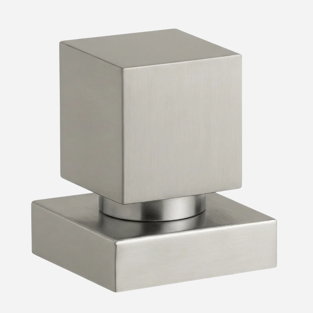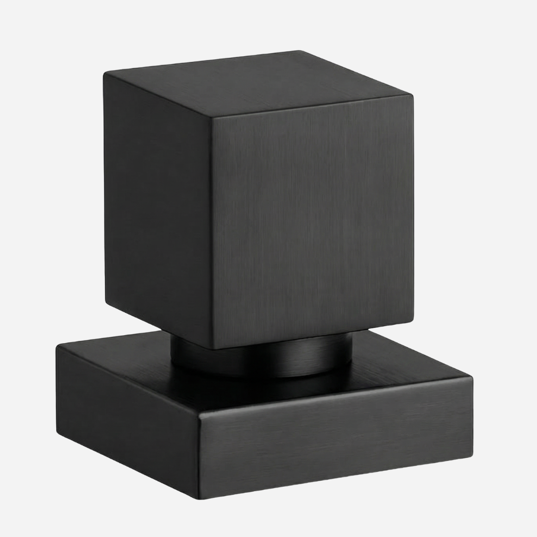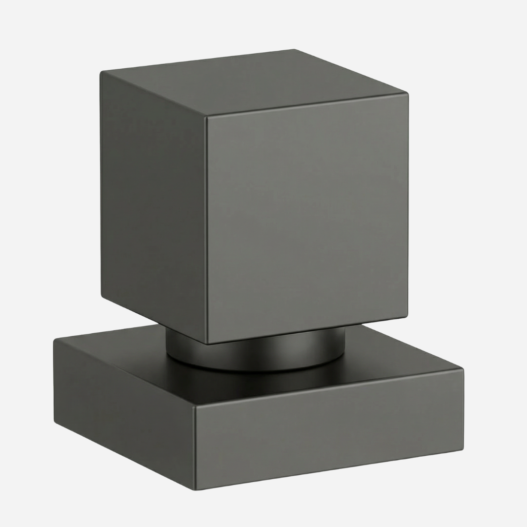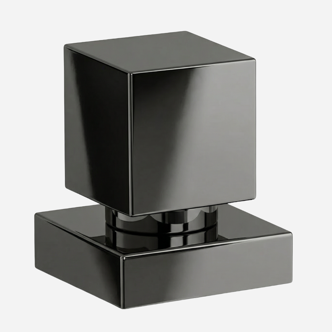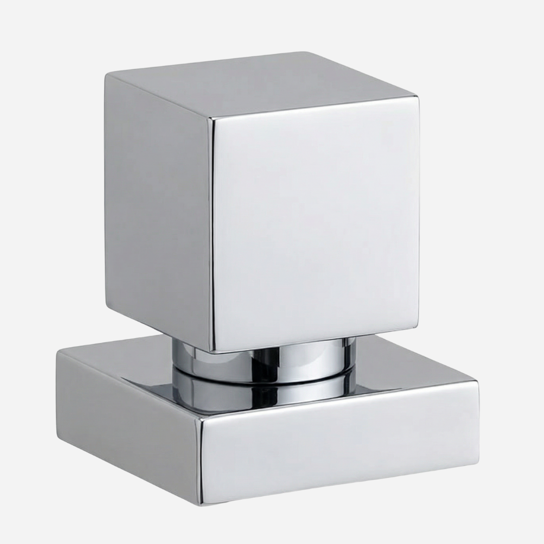 O volante cúbico oferece pega ergonômica e acionamento confortável, enquanto a base quadrada garante acabamento perfeito na parede, cobrindo imperfeições e proporcionando um visual impecável.