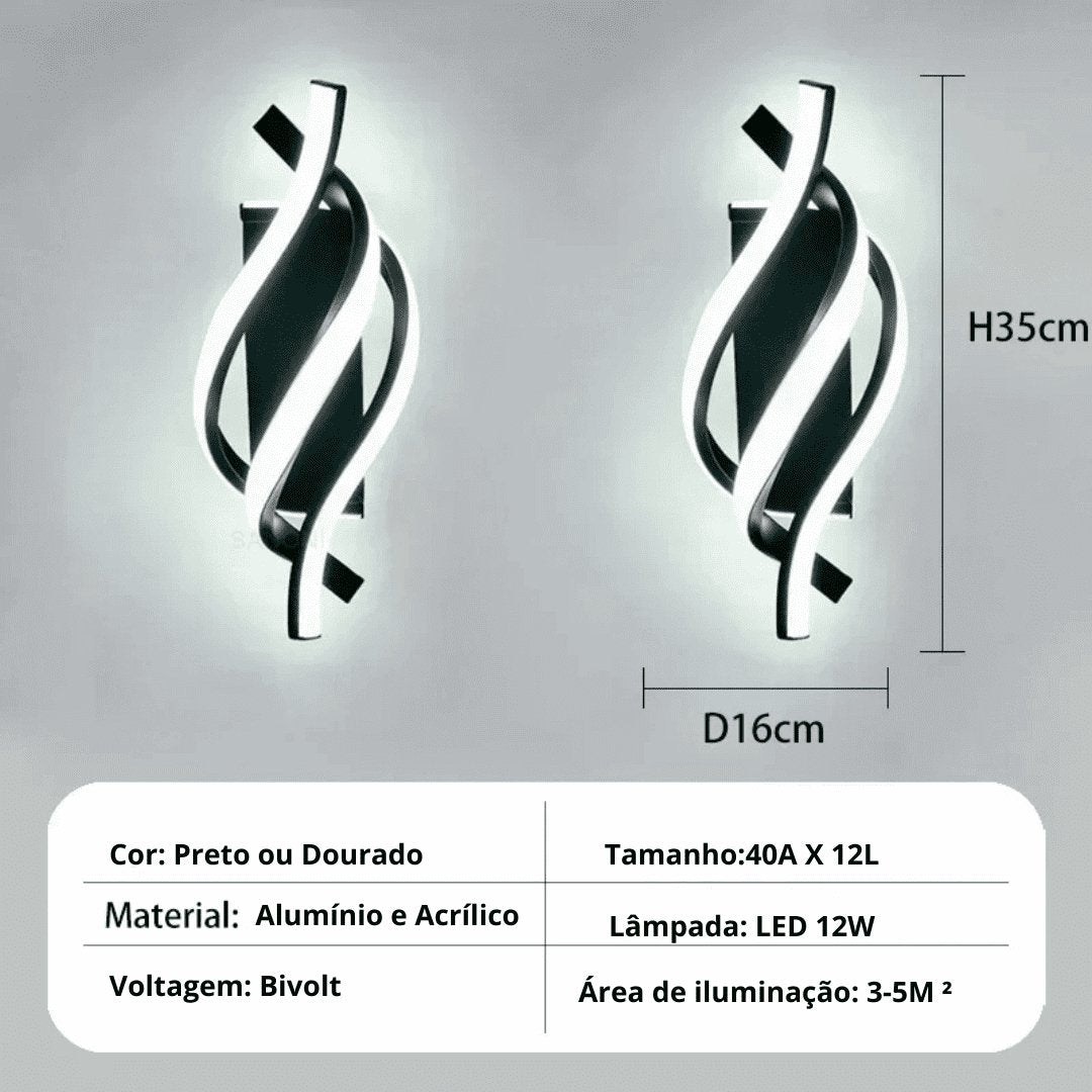 Material: Metal robusto, garantindo resistência, com detalhes em acrílico para uma iluminação elegante. Alúminio e Acrílico