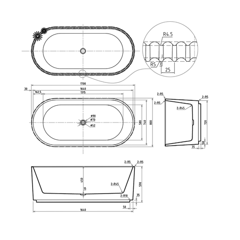 Banheira de Imersão Nias Art 1700 – Fibra Acrílica Branca | Movel do Brasil