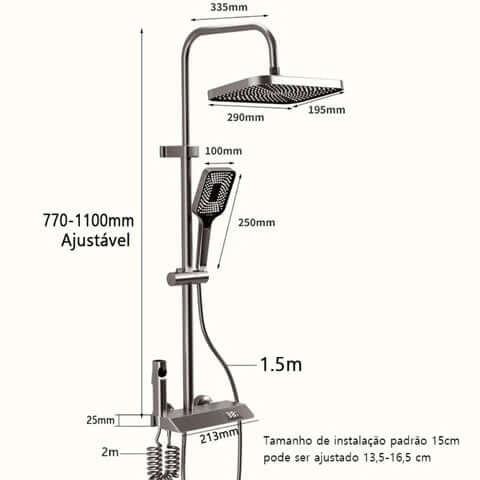 Altura Ajustável e Rotação 360°: Personalize a altura da ducha para se adaptar a qualquer usuário e tenha flexibilidade total durante o banho.