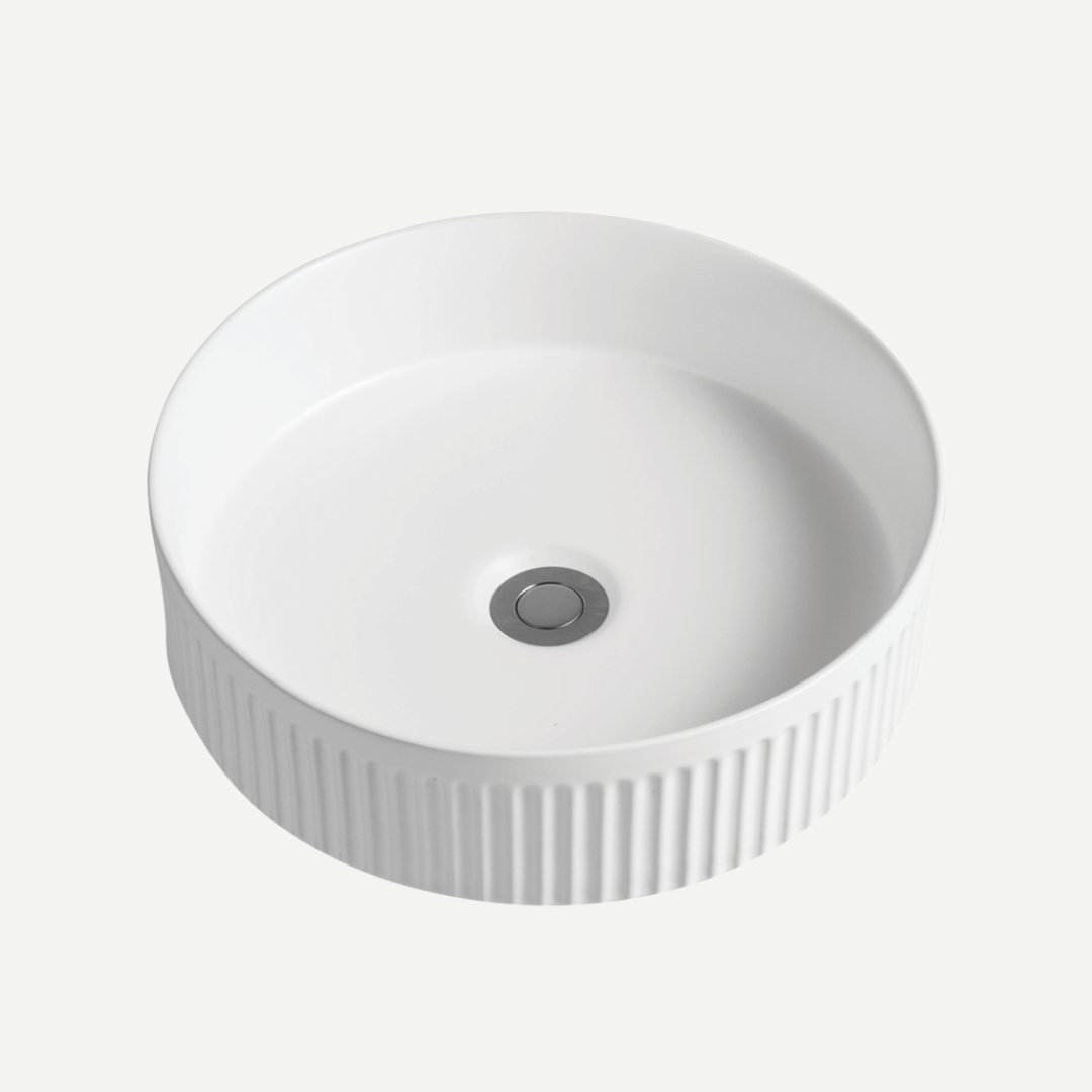 A Cuba de Apoio Nias Art representa o encontro entre design contemporâneo e elegância minimalista. Seu corpo redondo é envolvido por um delicado relevo canelado vertical que adiciona textura, profundidade e movimento à peça — elevando instantaneamente o nível estético de qualquer banheiro ou lavabo.
