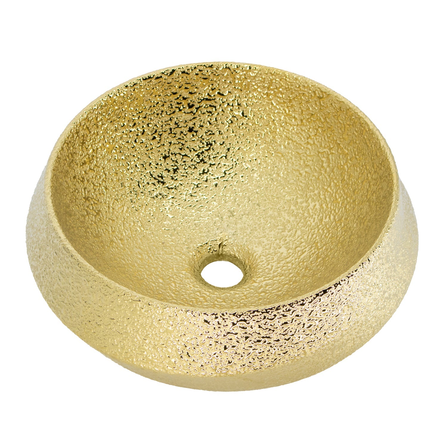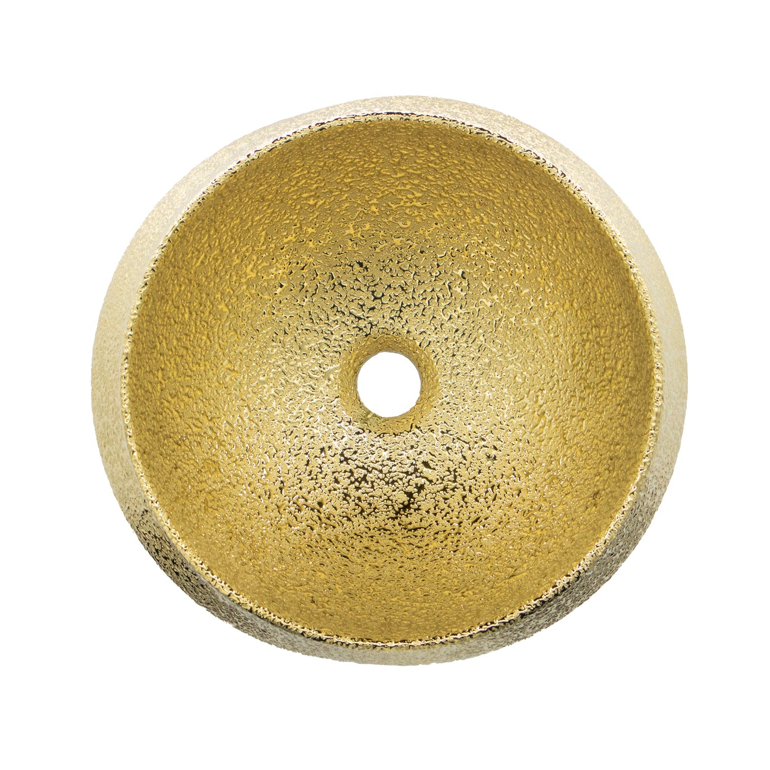 Com design marcante e acabamento luxuoso, a Cuba de Apoio MV46 Gold foi feita para ser o centro das atenções. Seu formato arredondado com linhas angulares suaves e acabamento em dourado texturizado remetem a uma peça escultórica, elevando o padrão estético do banheiro ou lavabo.