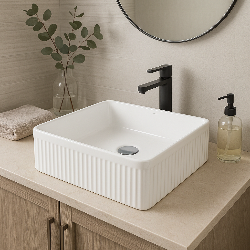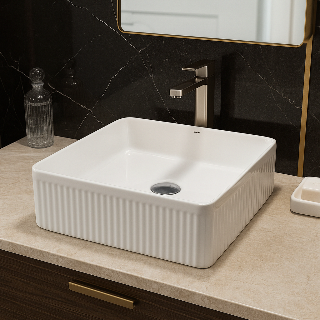 Cuba de Apoio Quadrada Doha Art 40×40 Branco Brilho
