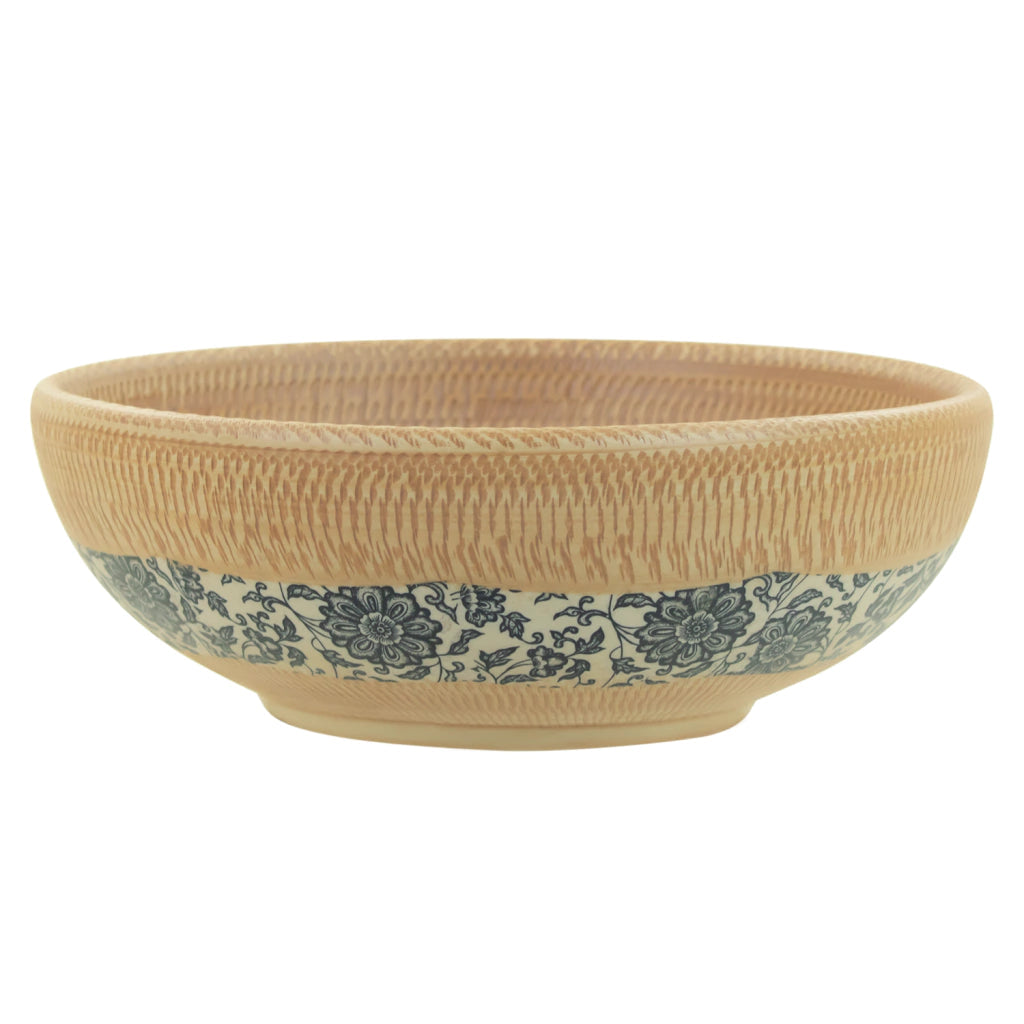 Transforme seu banheiro ou lavabo em um ambiente cheio de identidade com a Cuba de Apoio ART35. Inspirada na estética artesanal e natural, essa peça une rusticidade e sofisticação em um equilíbrio impecável. Seu acabamento externo em marrom fosco com textura levemente rugosa remete ao toque da cerâmica manual, enquanto o interior surpreende com uma delicada estampa floral azul sobre fundo claro, criando um contraste artístico que enriquece qualquer composição.