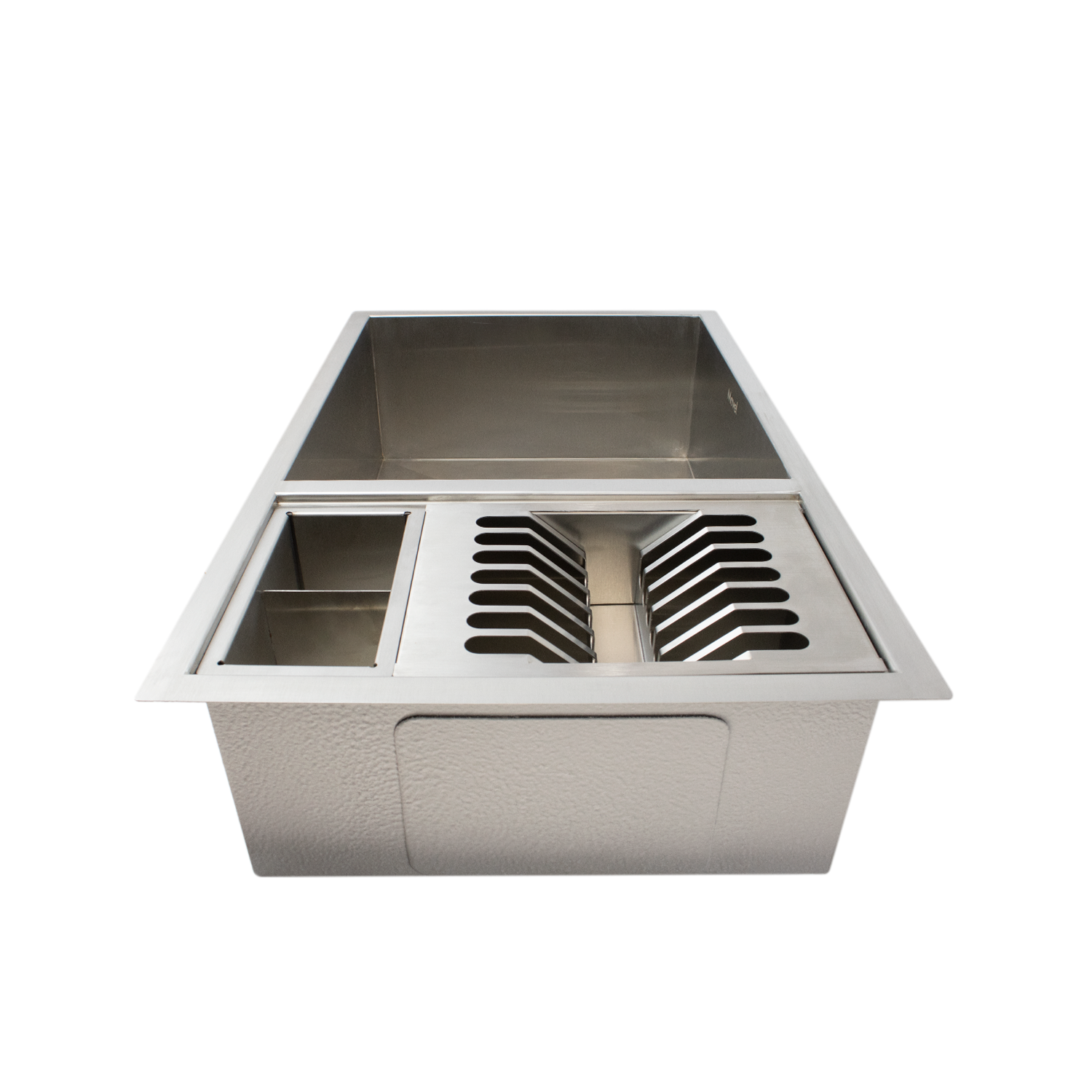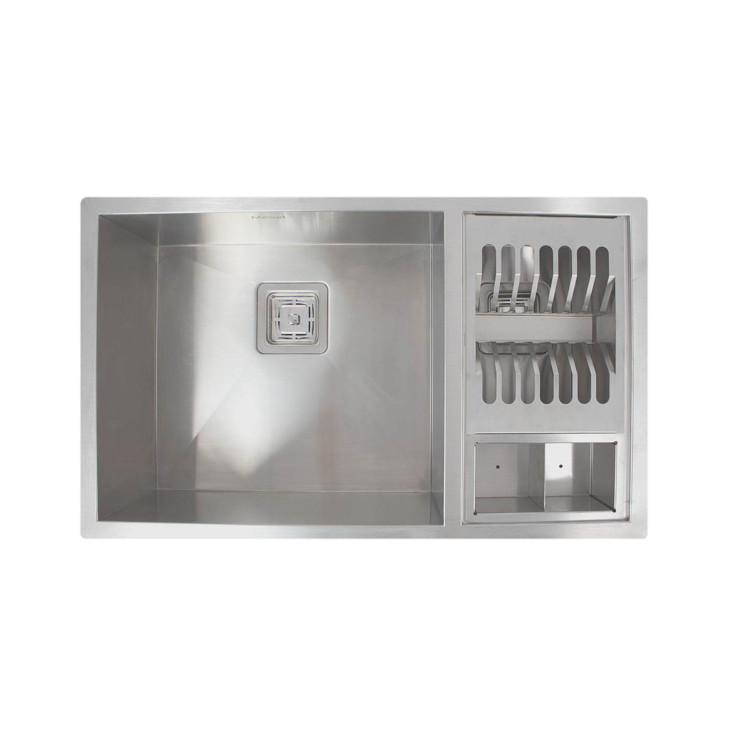 Essa cuba entrega um novo patamar de organização para sua cozinha. Suas duas cubas independentes, o canal central e o acabamento escovado criam uma experiência visual e funcional de alto padrão — ideal para quem busca compor uma cozinha elegante, eficiente e com soluções inteligentes de armazenamento.