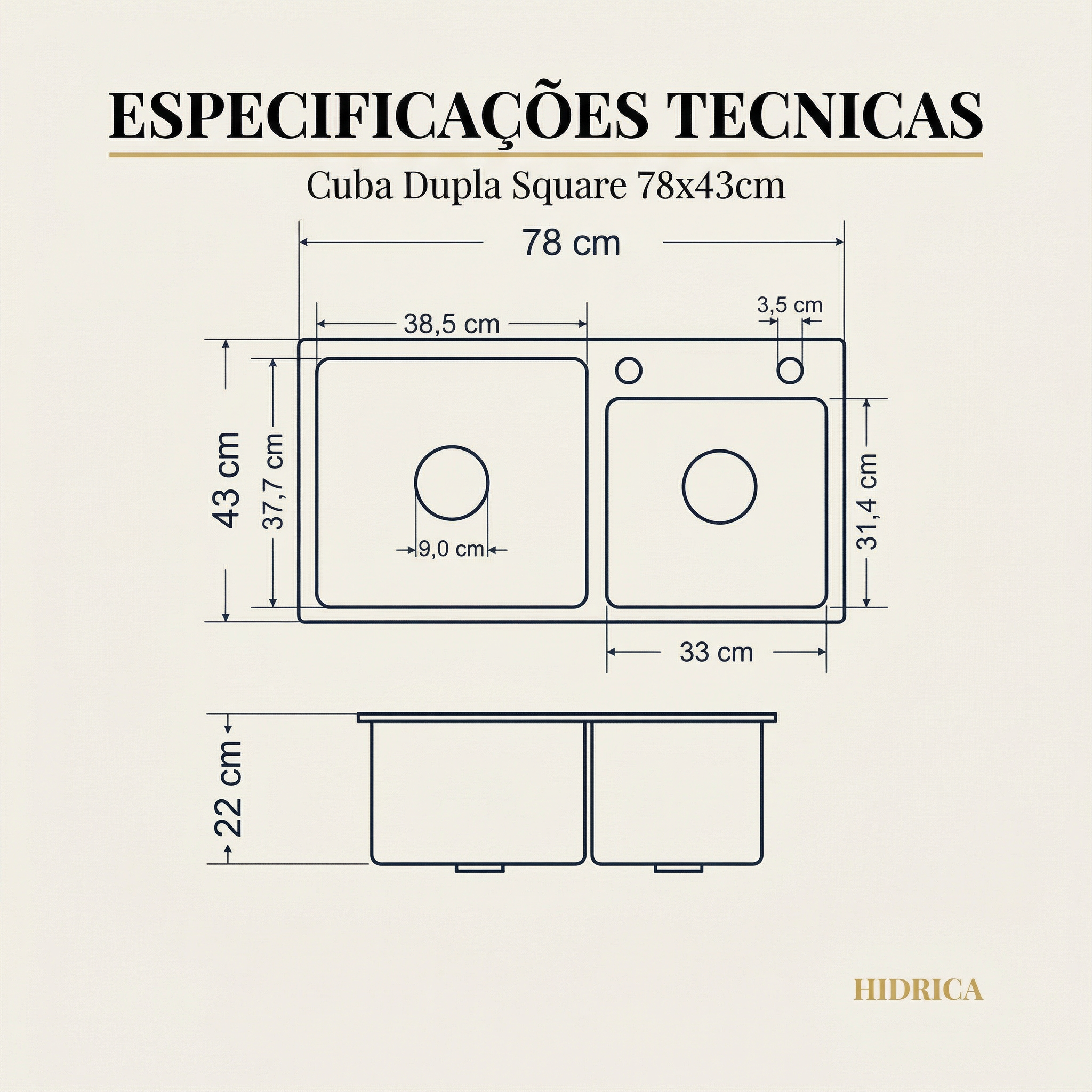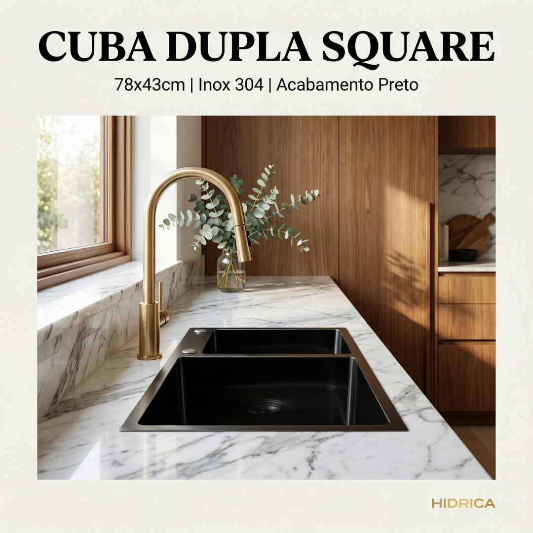 78x43cm. Inox 304. Acabamento Preto. Presença absoluta na sua cozinha.