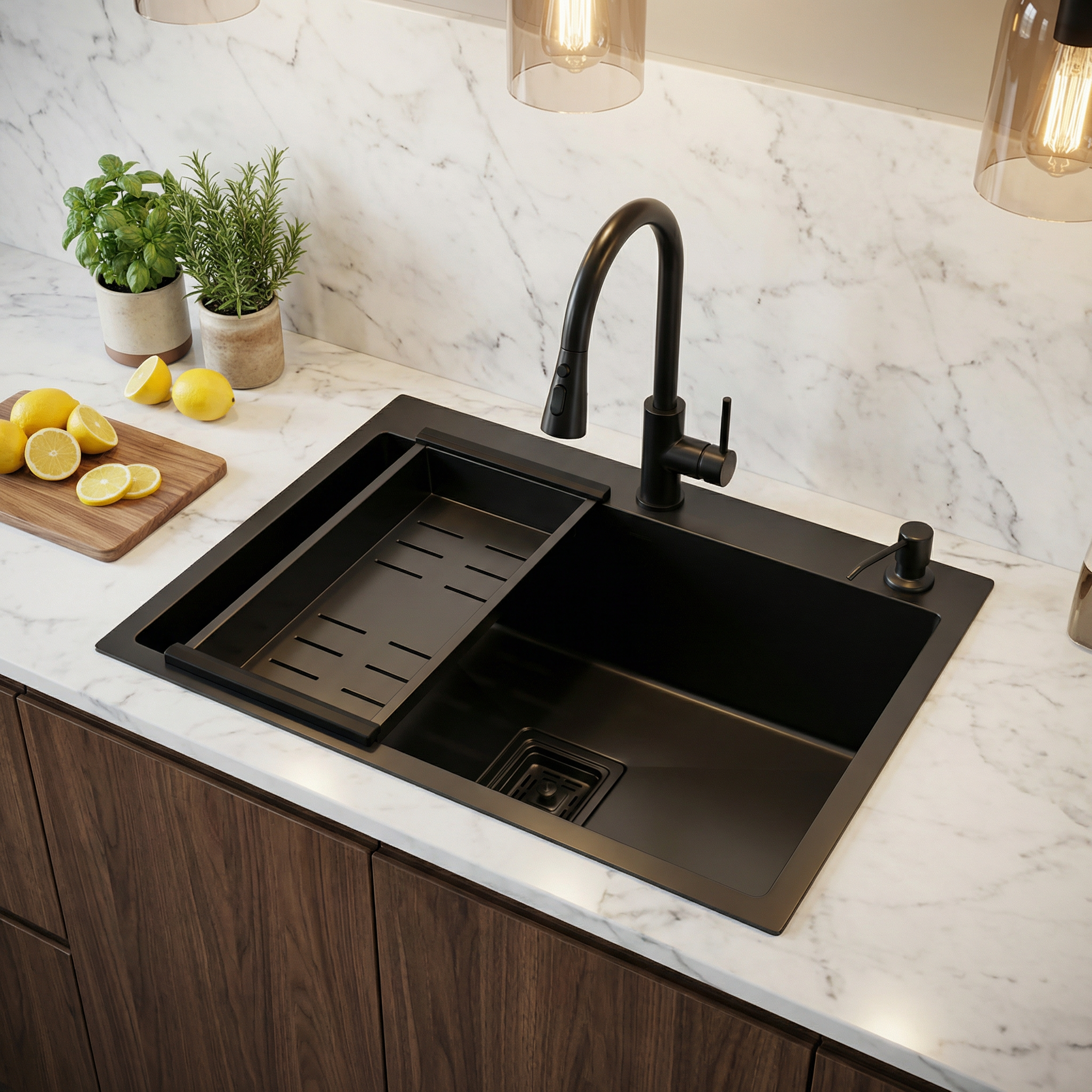 60x45cm. Inox 304. Acabamento Preto. Bojo único para quem leva a cozinha a sério.