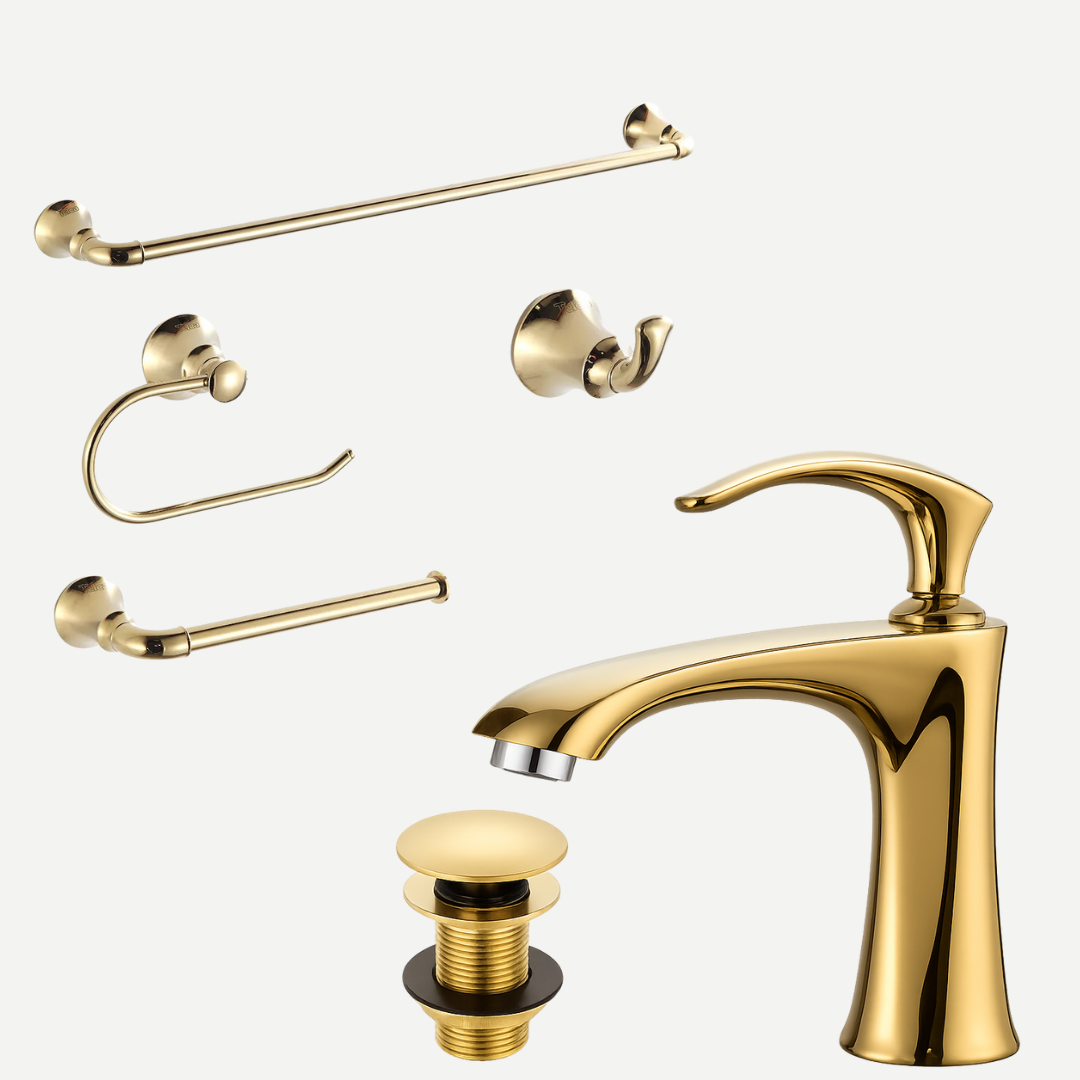 Kit Completo de metais para Banheiro Lusso Dourado - 6 peças