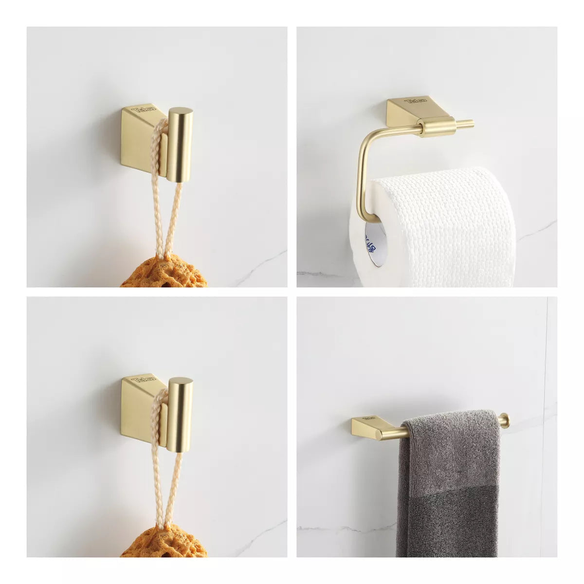 Kit Completo de Penduradores para Banheiro Minimal – Gold Escovado Design Contemporâneo com Acabamento Premium