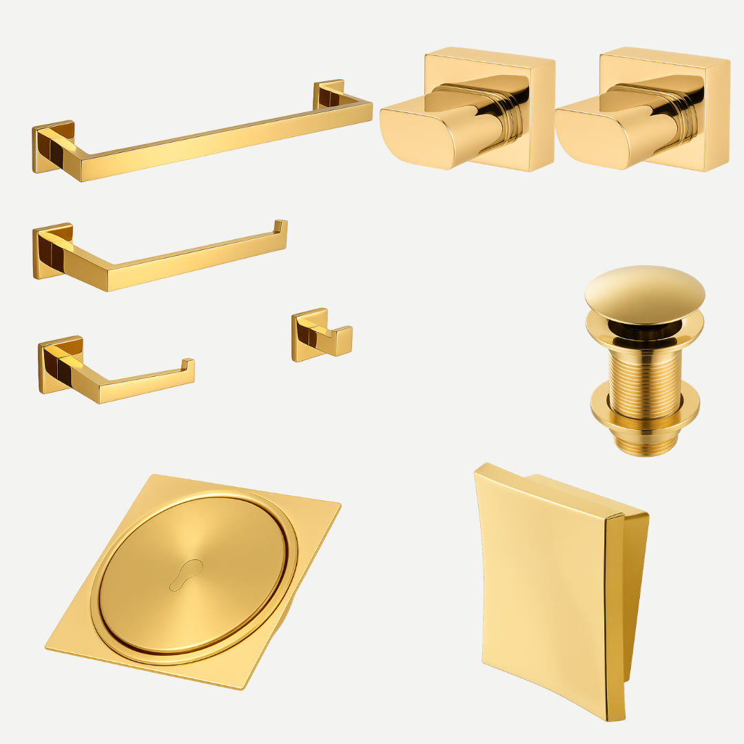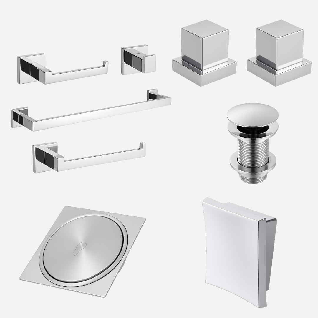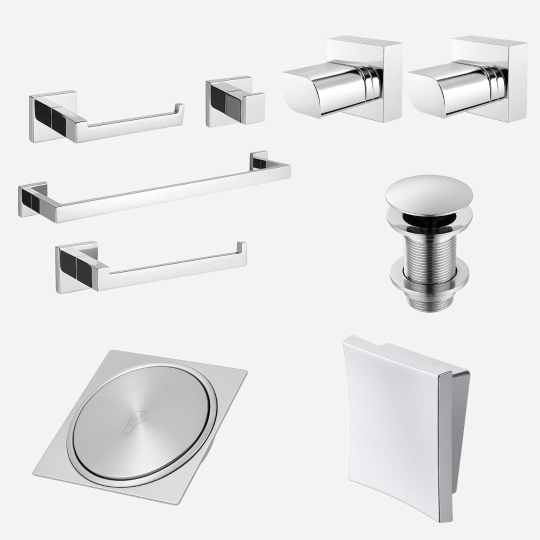 Disponível em quantidade limitada, este kit traz todas as peças essenciais para um banheiro harmonioso e elegante.