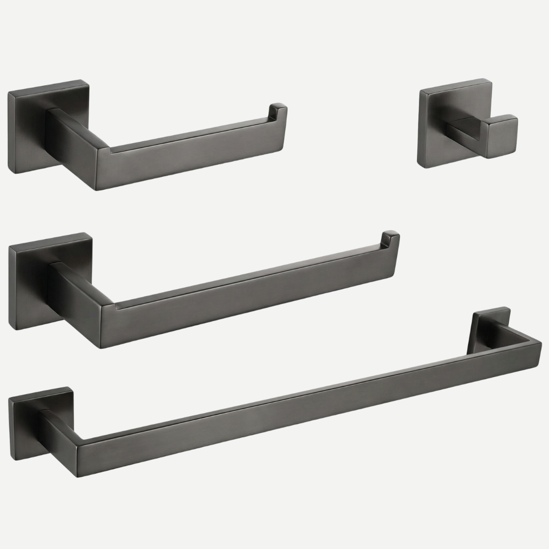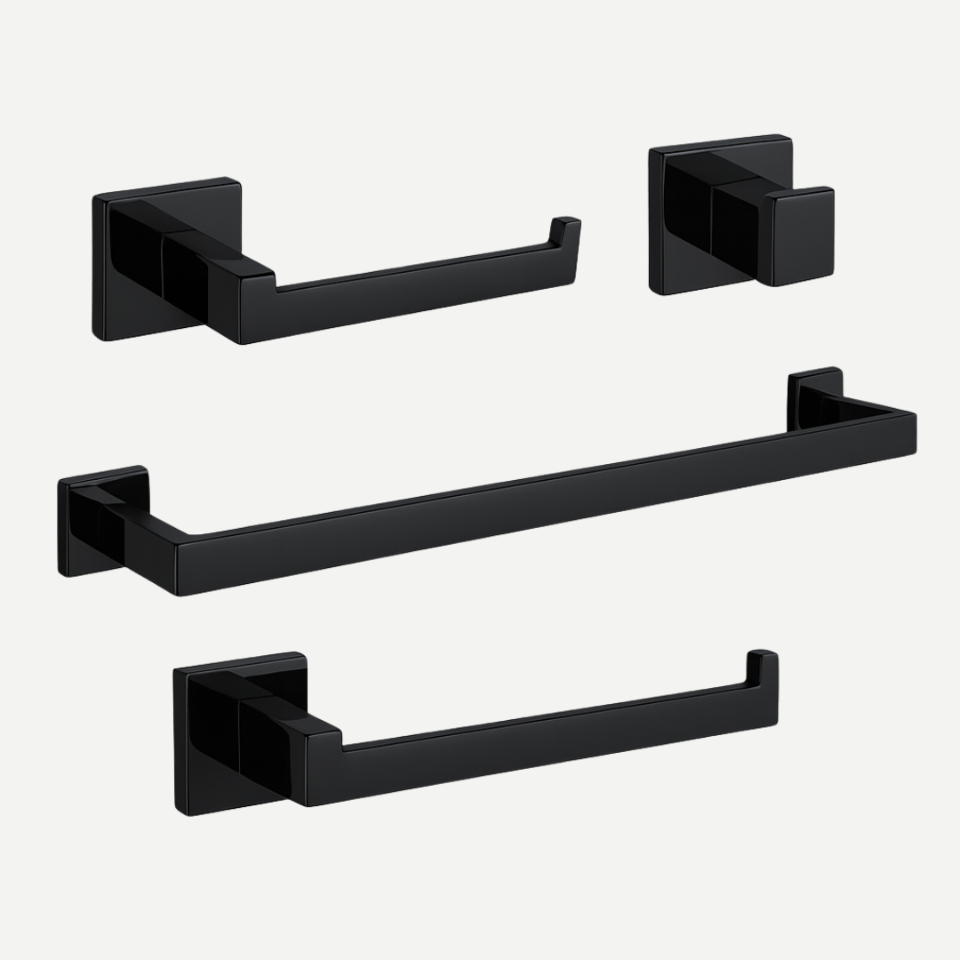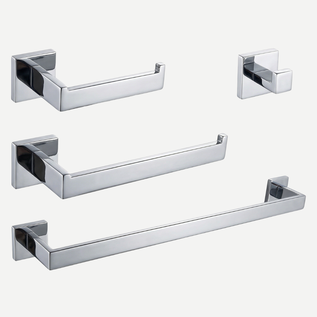 4 peças. Inox 304 maciço. A assinatura do banheiro contemporâneo.