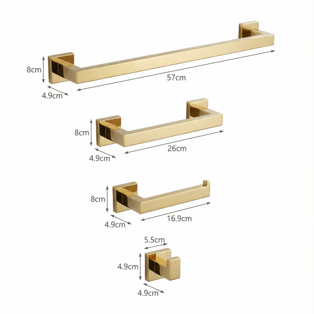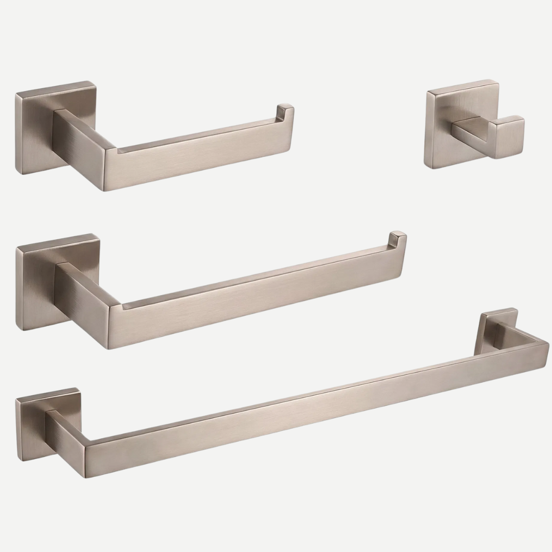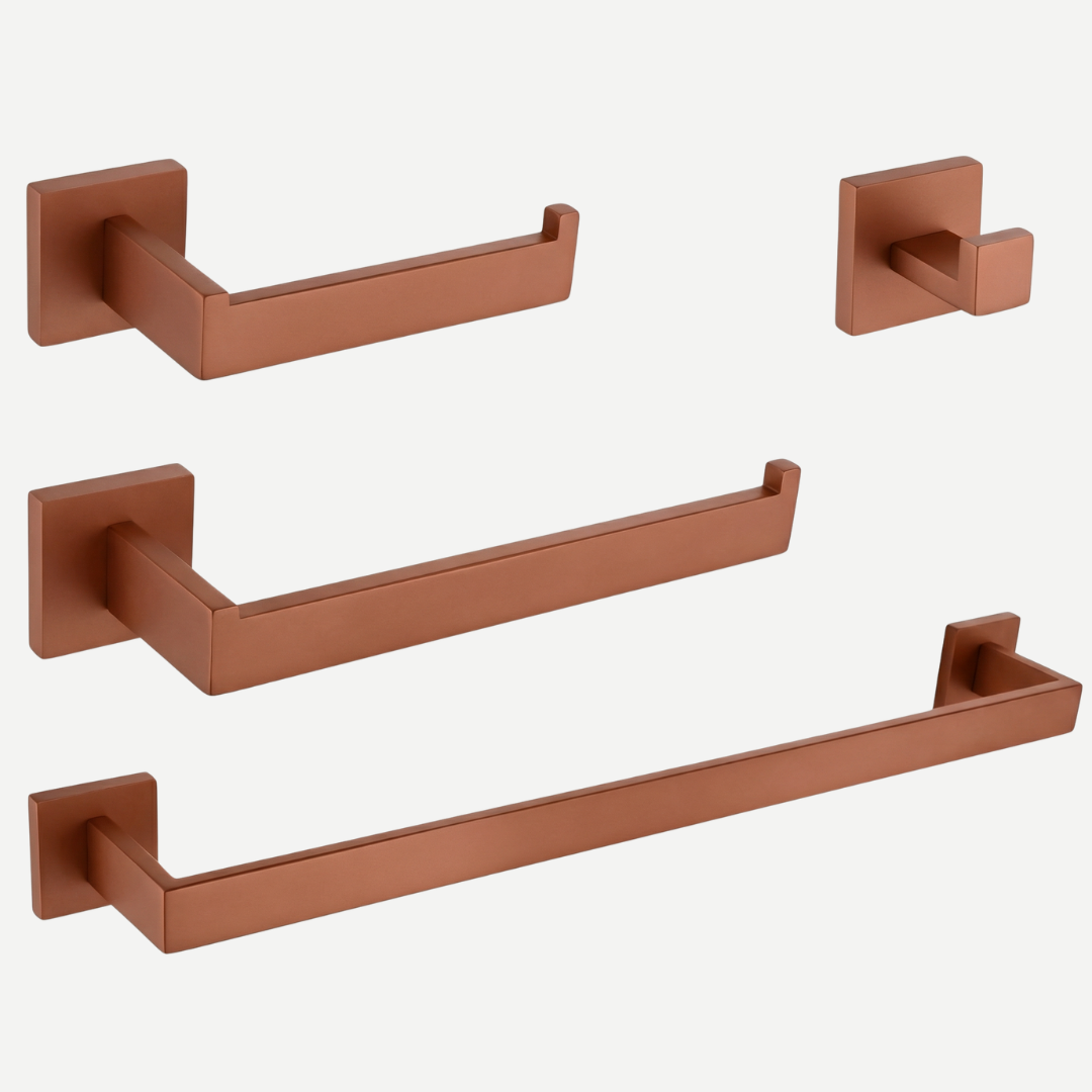 4 peças. Inox 304 maciço. A assinatura do banheiro contemporâneo.