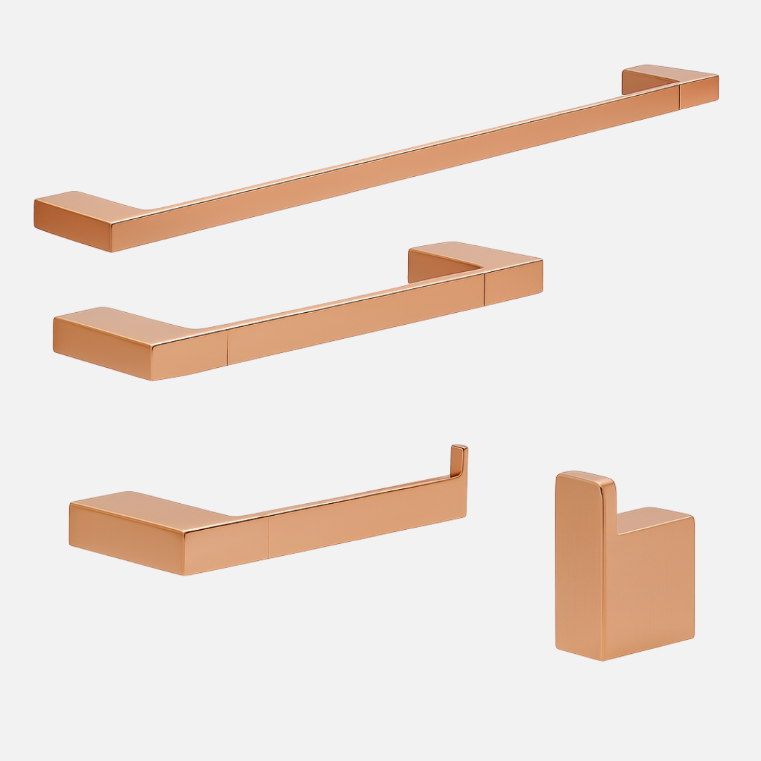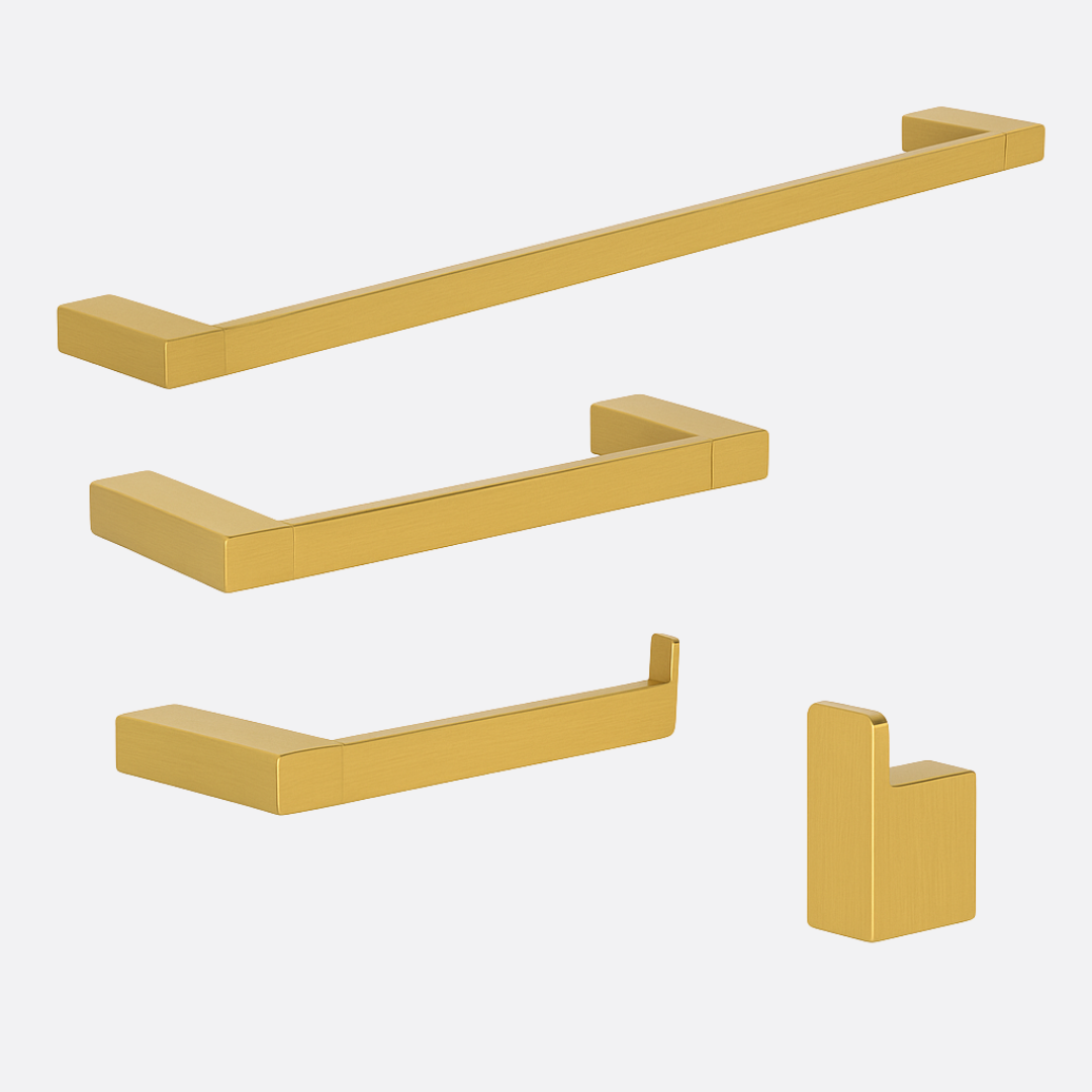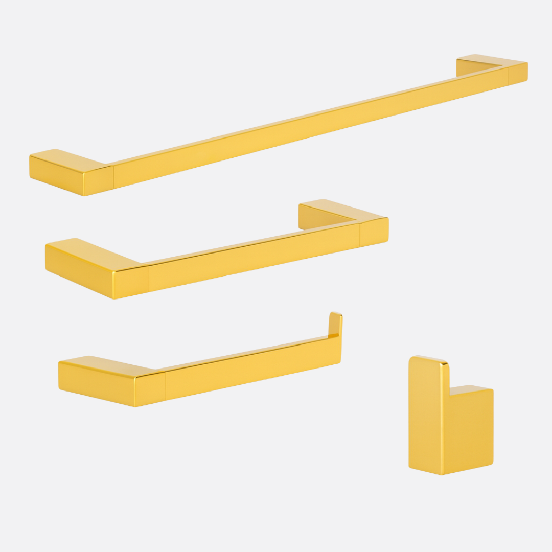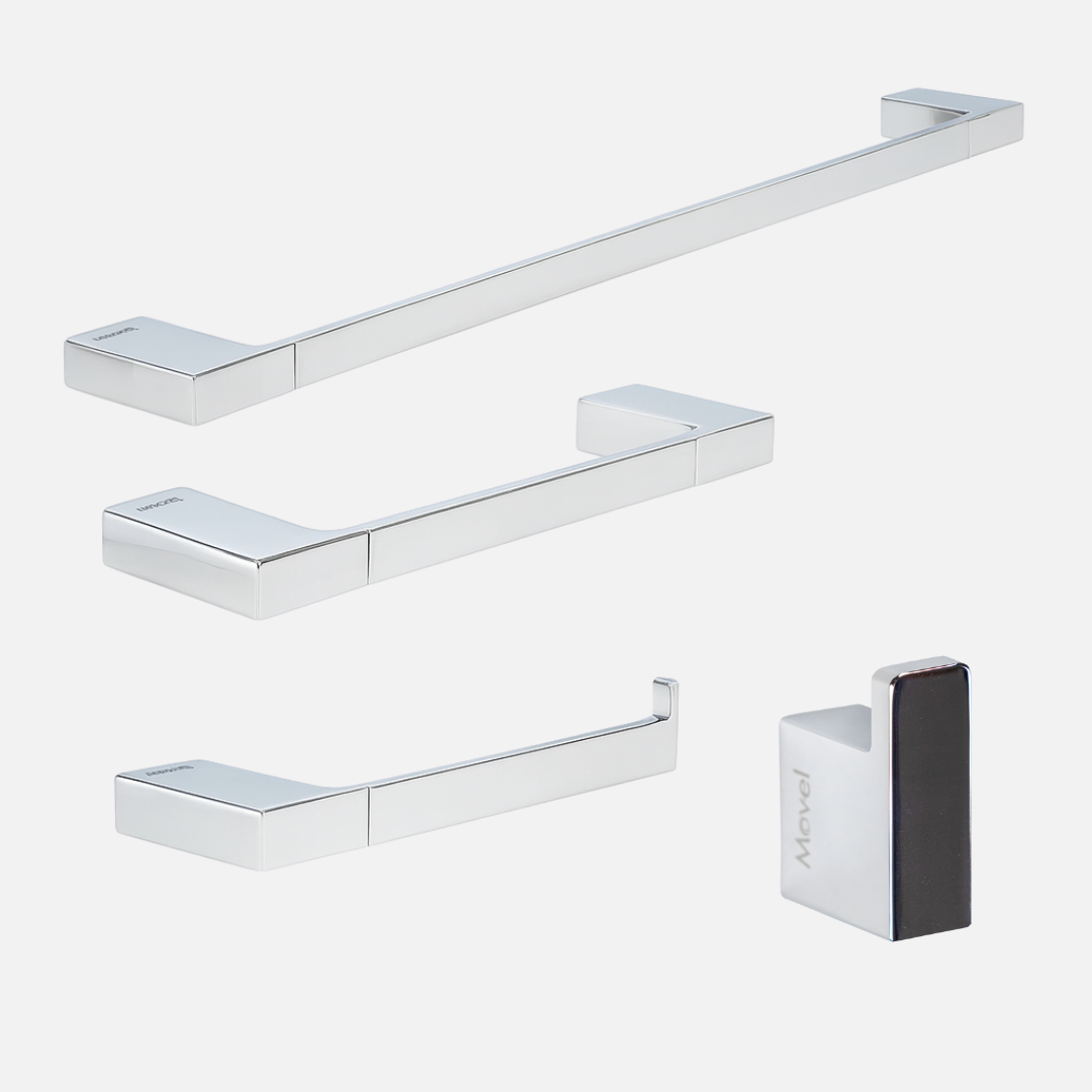 Estimada entre Aguarde! Carregando informações...Transforme o seu banheiro com o Kit de Acessórios Lux da Movel do Brasil. Cada peça foi desenhada com linhas precisas e acabamento refinado, entregando o equilíbrio perfeito entre beleza e funcionalidade. Produzidos em liga metálica de cobre e zinco, os acessórios garantem resistência à umidade, brilho duradouro e excelente estabilidade.