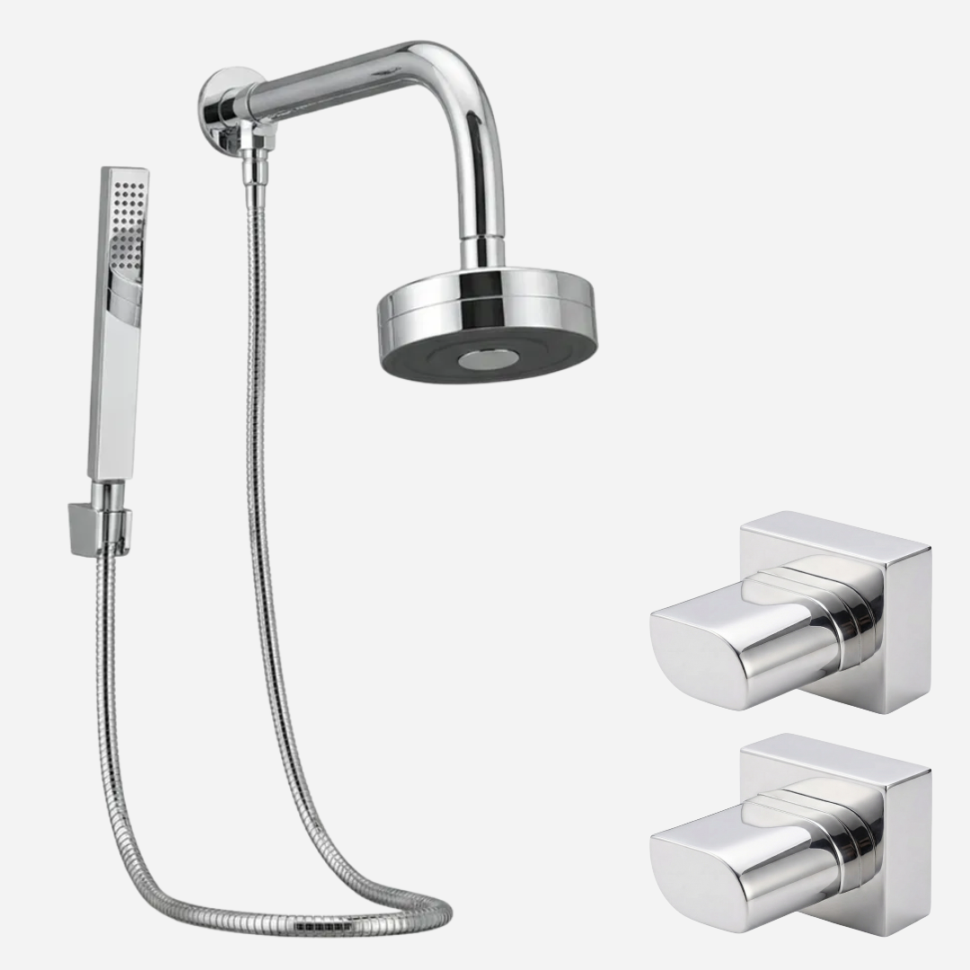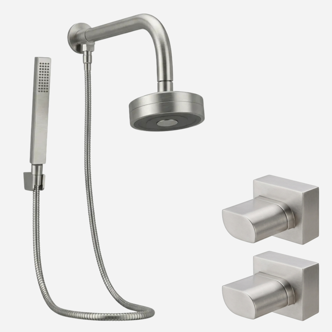 Ducha Autolimpante com Desviador + 2 Acabamentos de Registro. Potência e elegância em um só conjunto.