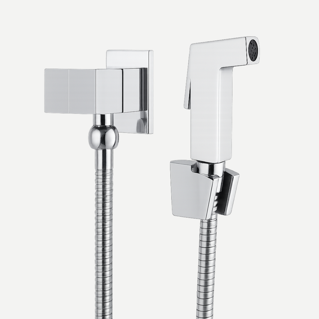Ducha Higiênica Quadrada – Fabricada em Inox 304, com design ergonômico e gatilho de acionamento suave, ideal para um banheiro mais higiênico e sofisticado.