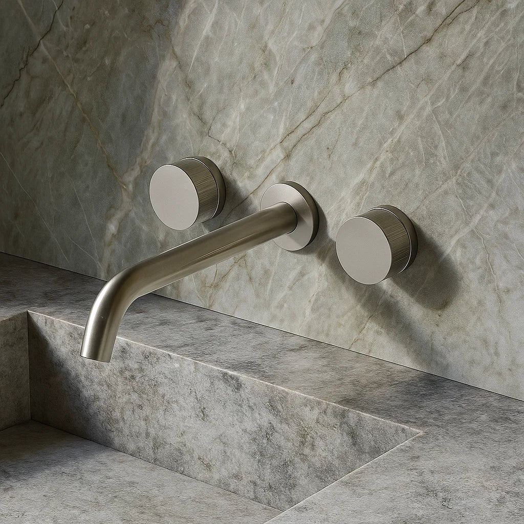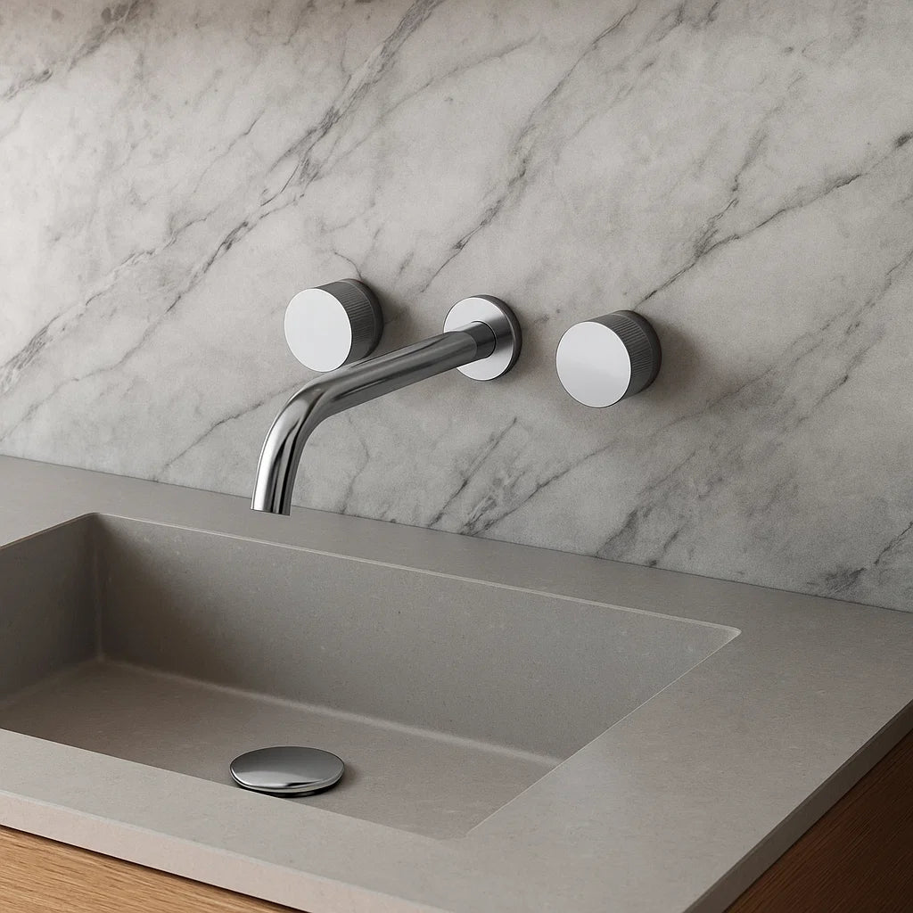 O Misturador Duplocomando de Parede Nias da Movel é a escolha ideal para banheiros e lavabos que exigem elegância e praticidade. Seu design minimalista com acionamento independente para água quente e fria garante controle total da temperatura e da vazão com leveza e precisão.