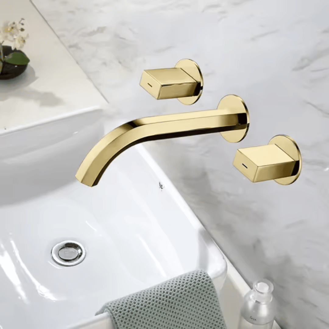 Misturador Duplo comando de parede para Lavabo Diamond dourada