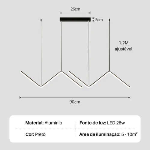 O Pendente Dellatorre destaca-se pelo seu design moderno, minimalista e pela sua funcionalidade. Com um perfil de LED integrado, ele não apenas ilumina seu espaço com uma luz agradável e confortável para os olhos, mas também oferece uma economia significativa de energia, até 90% se comparado às lâmpadas tradicionais.