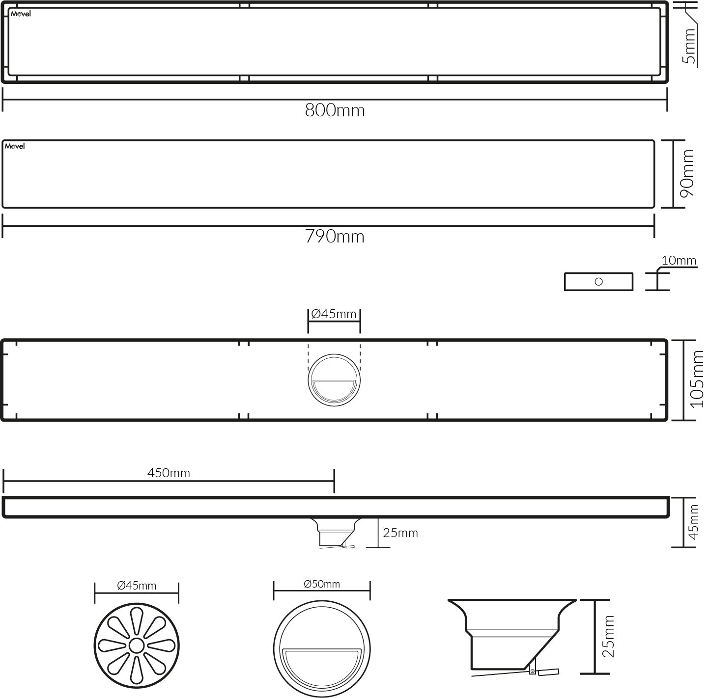 Ralo Linear com válvula de fechamento anti-odor 80x10 Lux