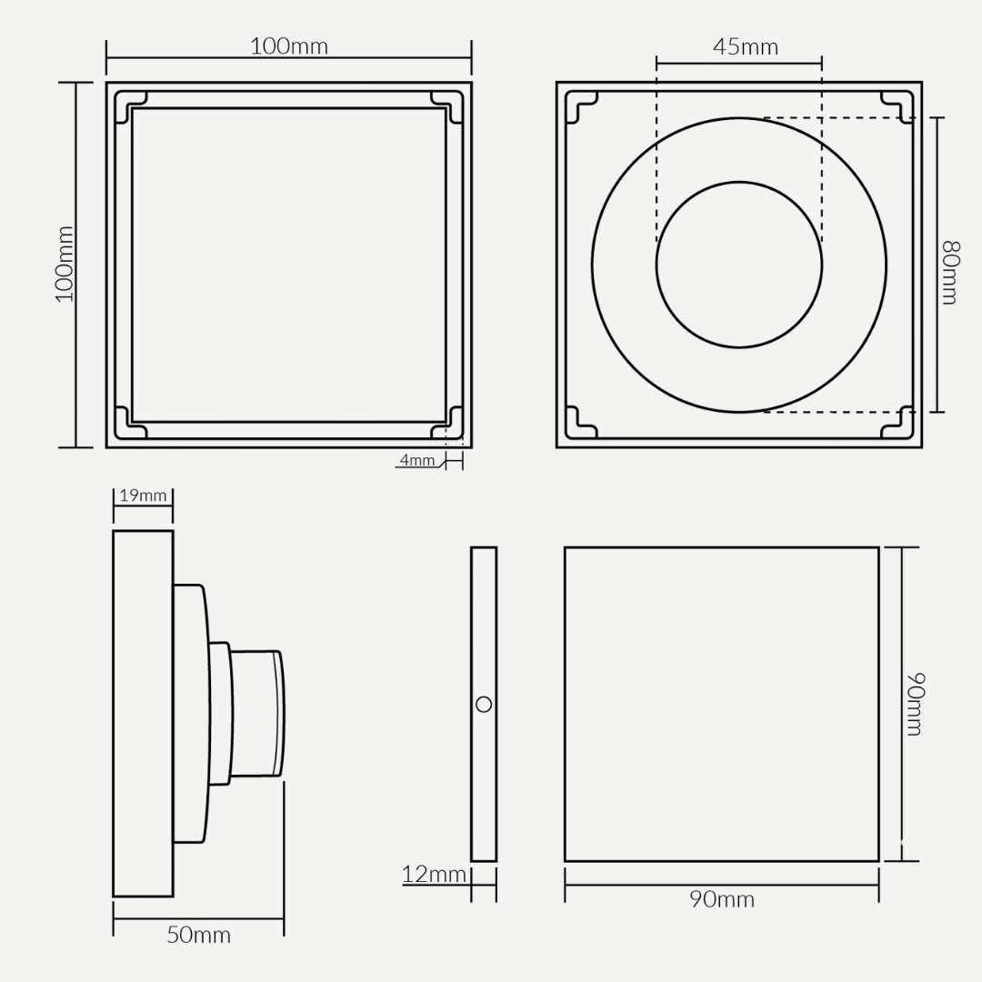 Ralo minimalista com válvula de fechamento e grelha 10x10 Lux