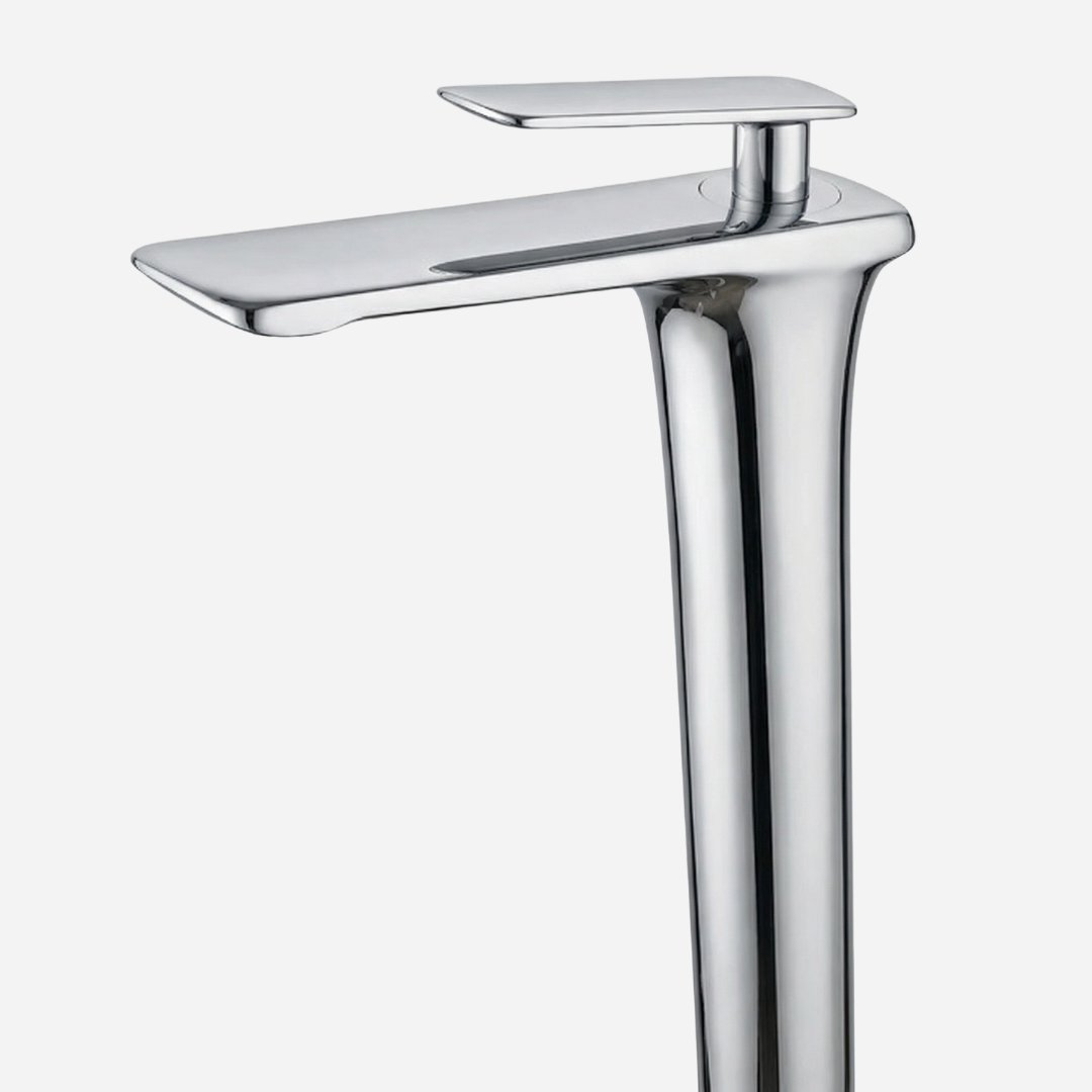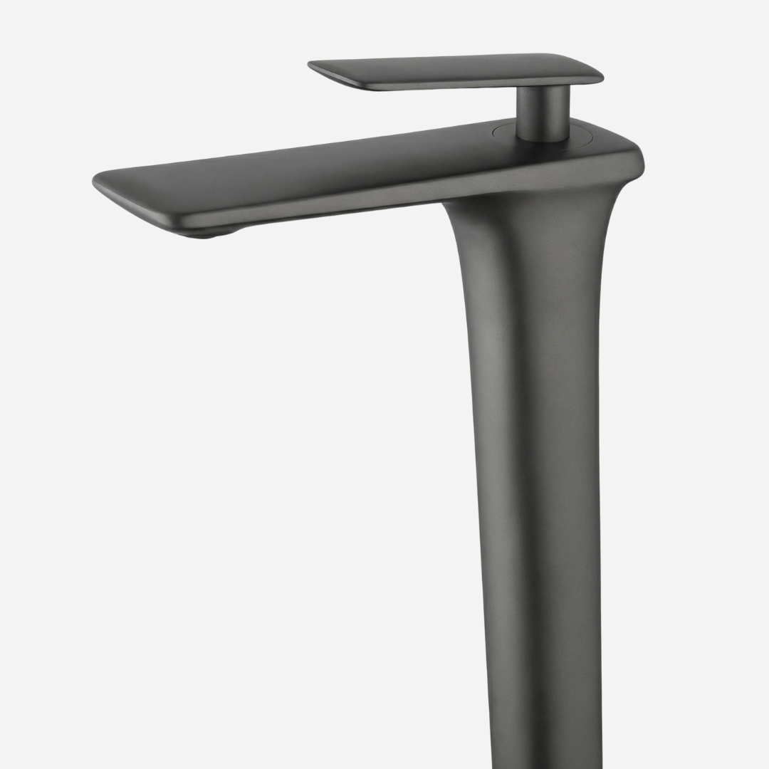 A Torneira Petra une elegância escultural e funcionalidade em um design que transforma seu lavabo em uma obra de arte. Seu corpo curvo e orgânico, inspirado nas formas naturais da pedra polida, cria uma silhueta única que se destaca em qualquer ambiente.