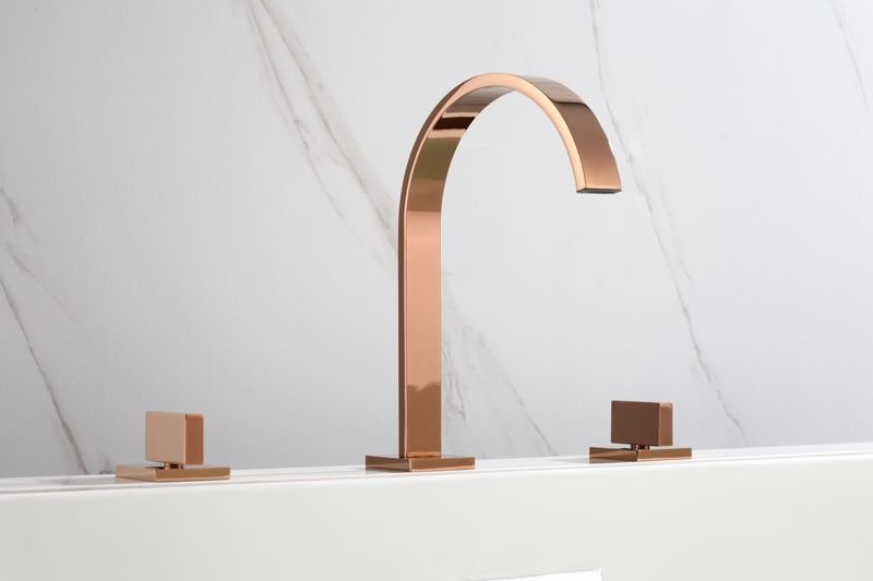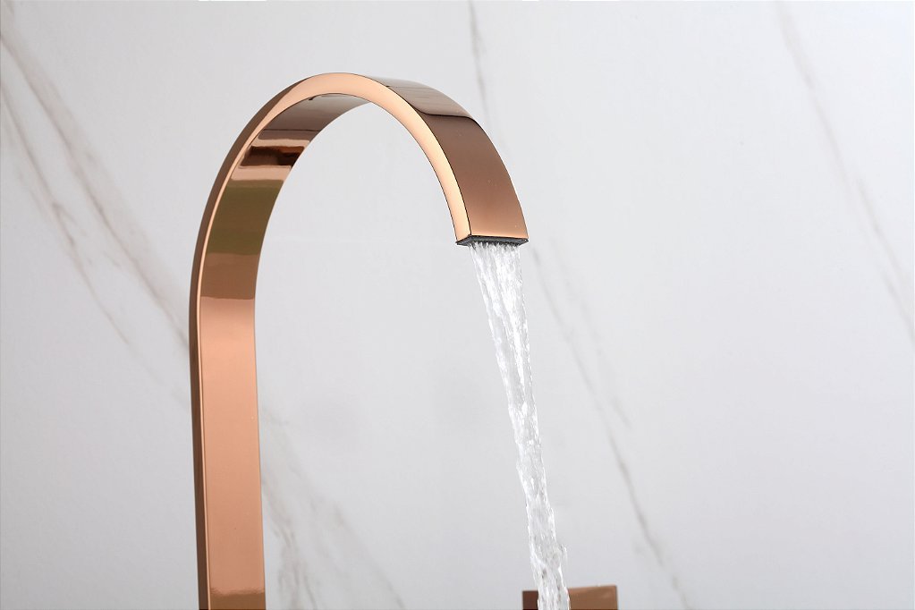 Torneira Duplo Comando Square Rosé Gold – Estilo e Precisão para Seu Banheiro