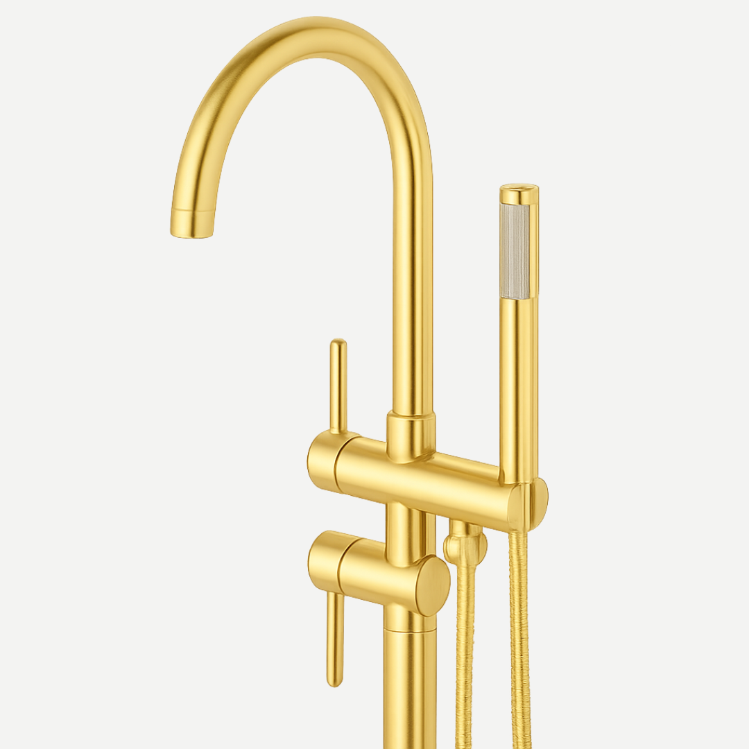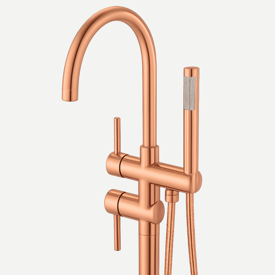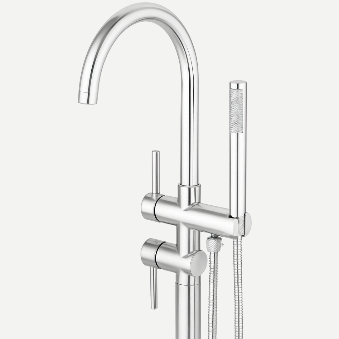 Disponível em quatro acabamentos premium – Prata Cromado, Preto Fosco, Dourado e Rosé Gold – esse misturador de piso adiciona um toque de requinte à sua banheira, tornando-a o centro das atenções no ambiente.