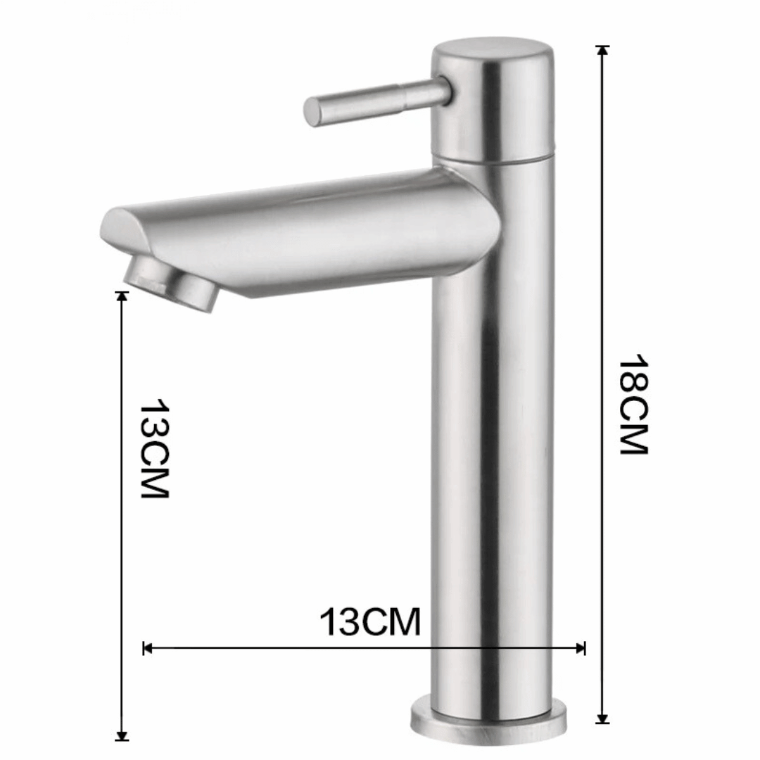 Torneira para Banheiro em Aço Inox - Bica Baixa Água Fria