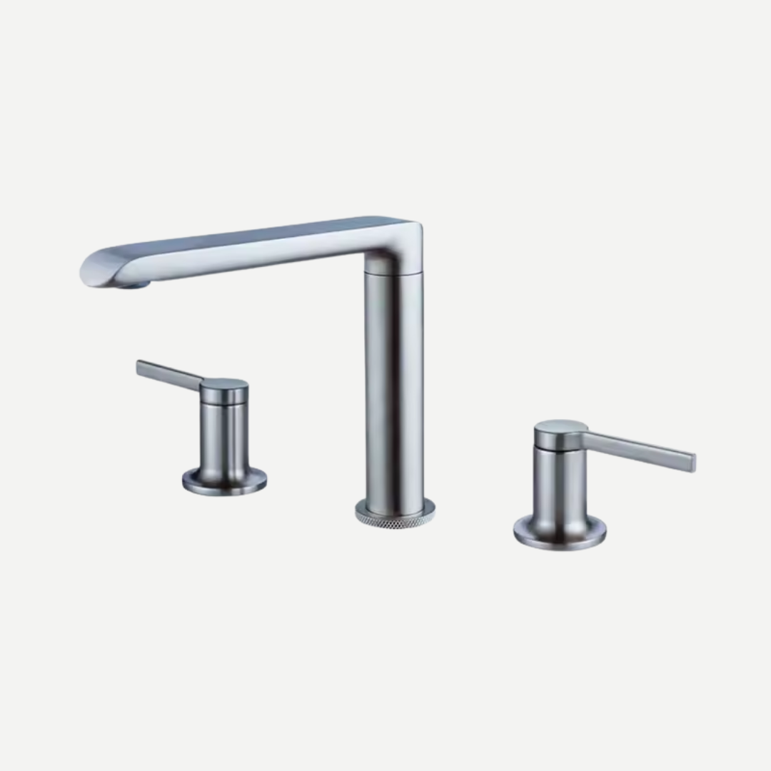 Misturador Duplo Comando Bica média para Banheiro Línea – Inox 304 com Acabamento Escultural