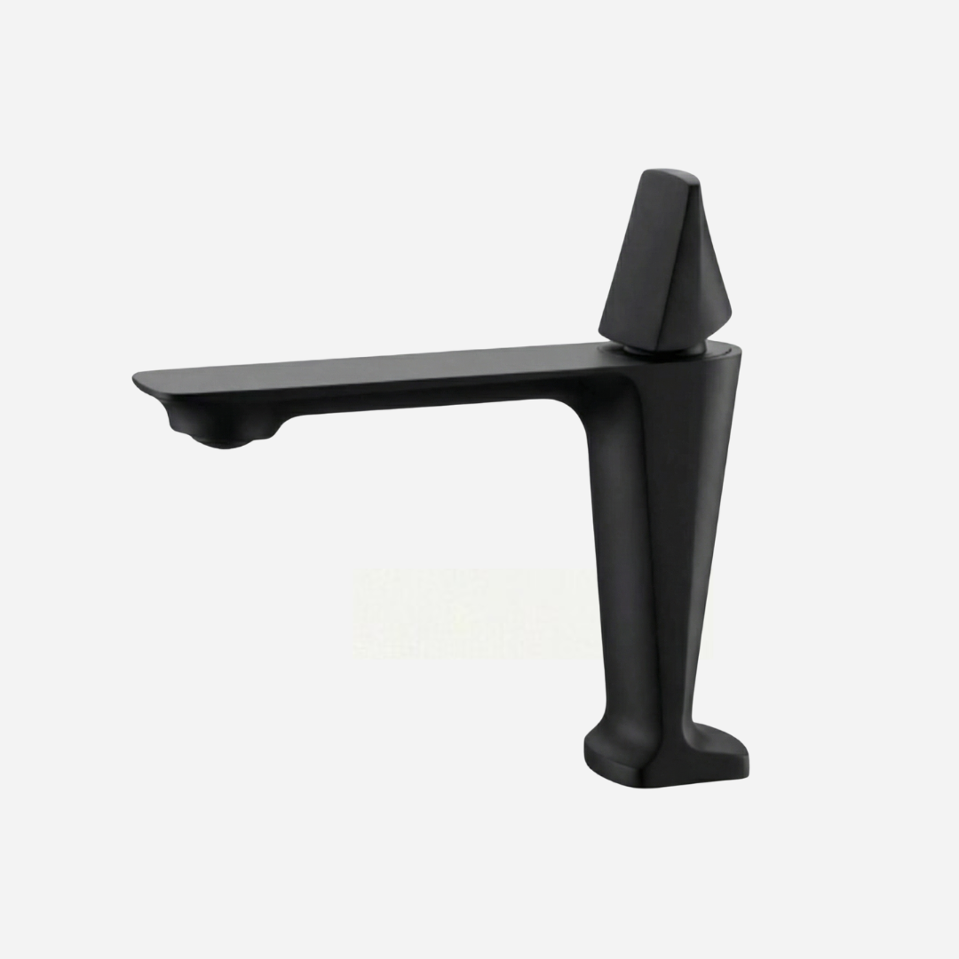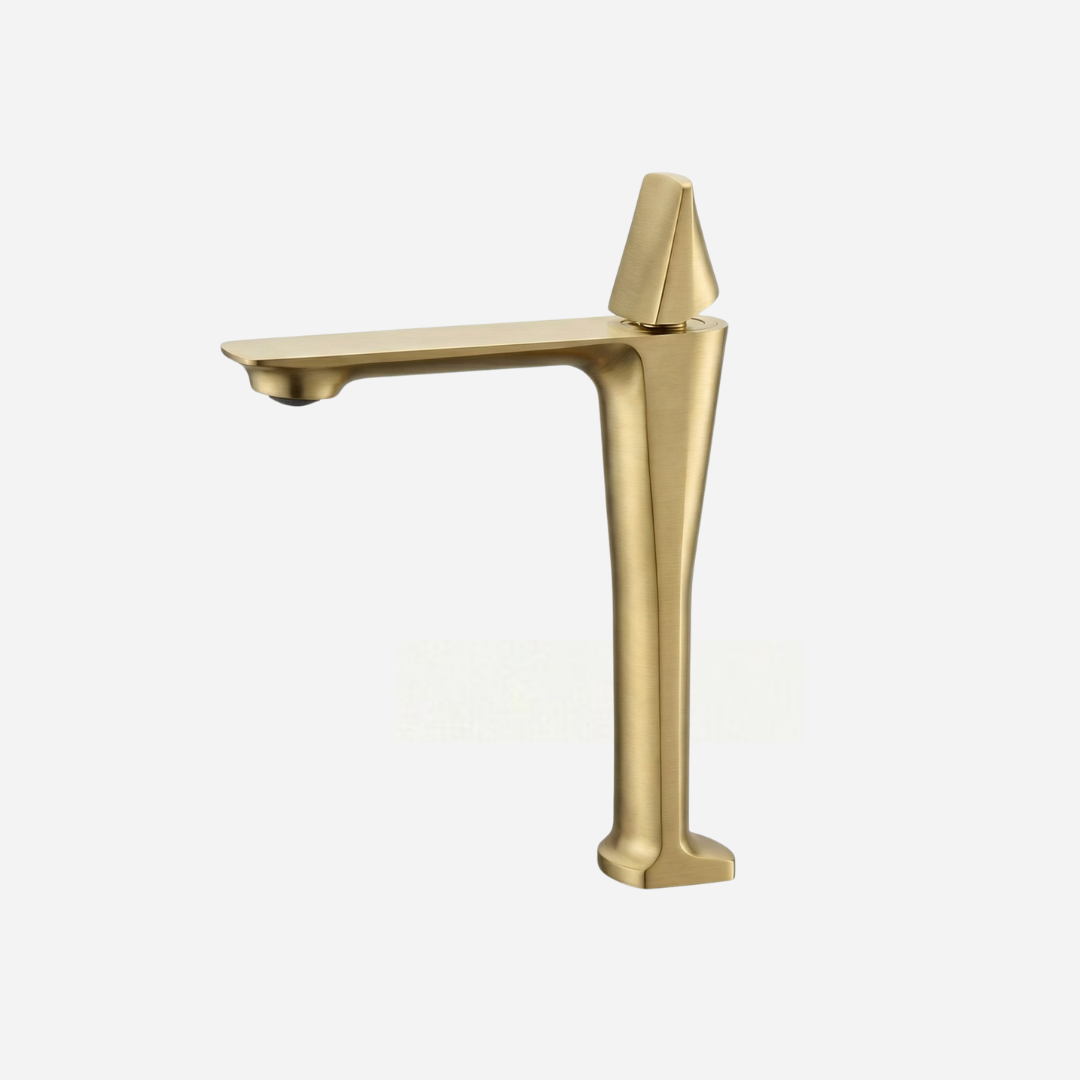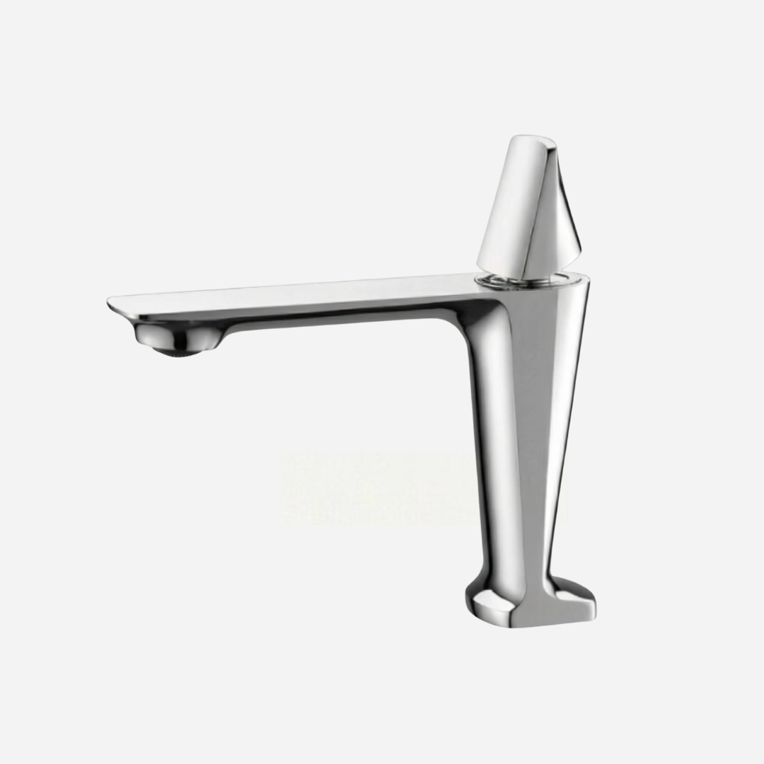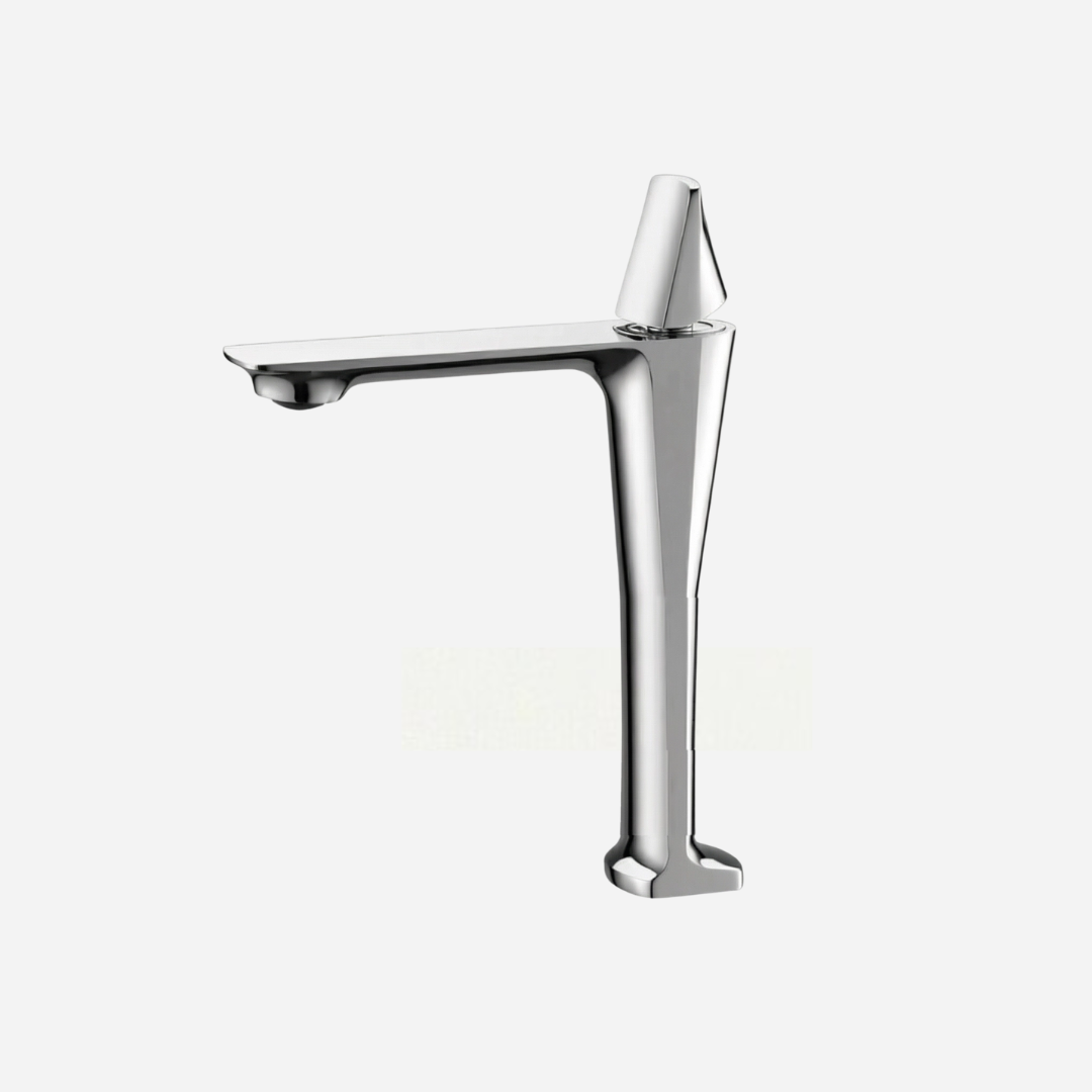 Inspirada na pureza das formas geométricas, a Torneira Edge traduz a precisão de um prisma em design funcional. Seu corpo facetado e angular cria um jogo de luz e sombra que transforma a torneira em uma verdadeira escultura sobre a bancada. Cada aresta foi pensada para comunicar presença e sofisticação.