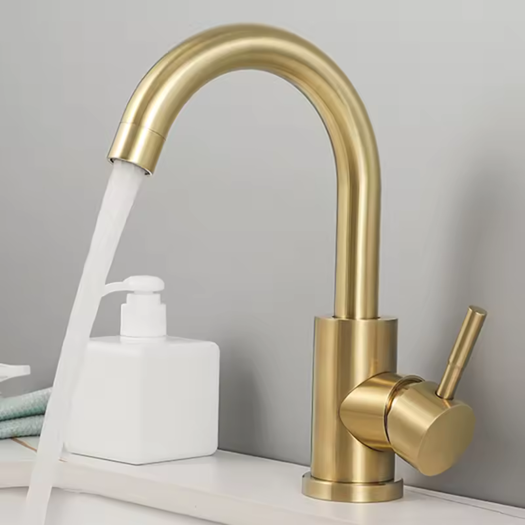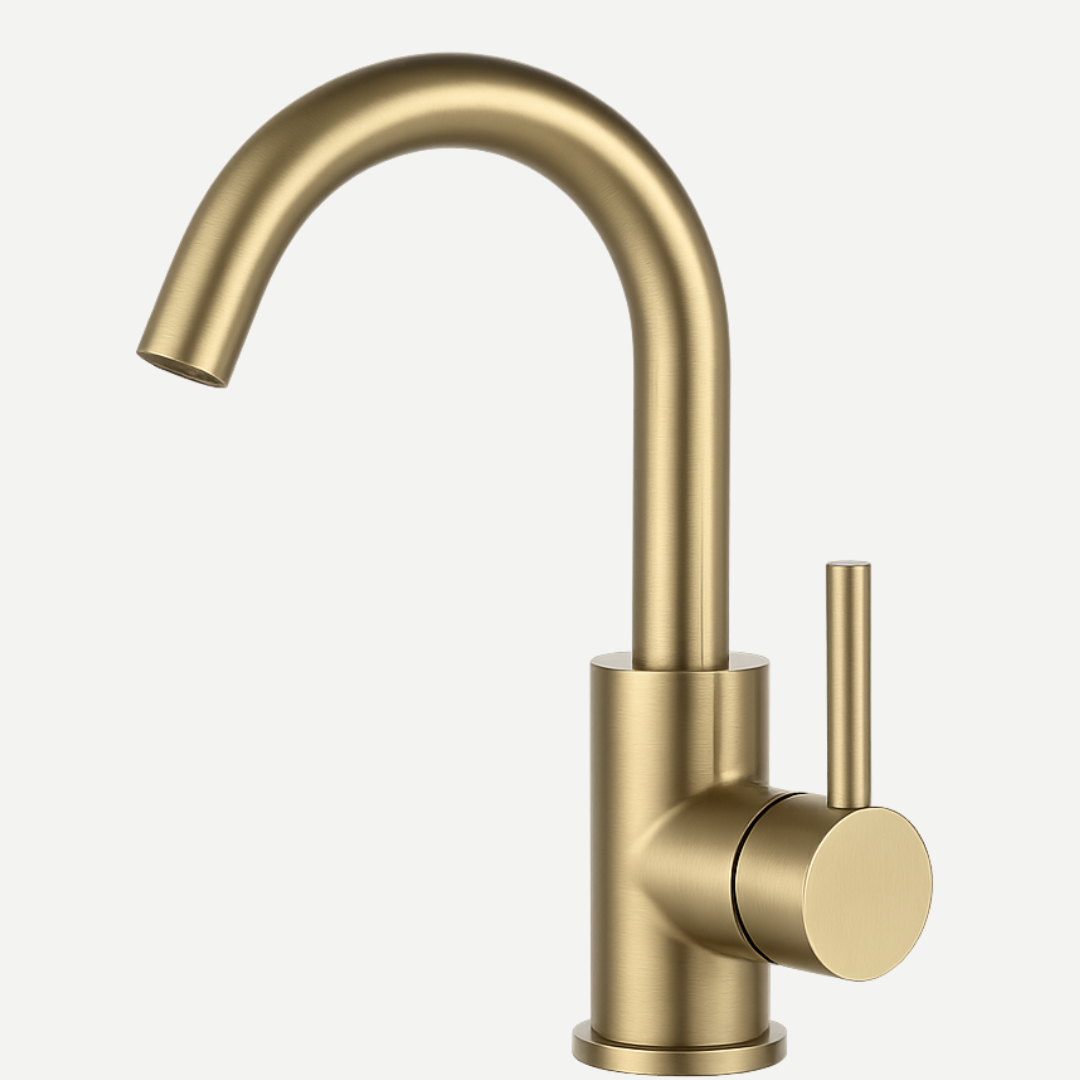 Torneira Monocomando bica baixa de bancada para Lavabo Élan Dourado escovado