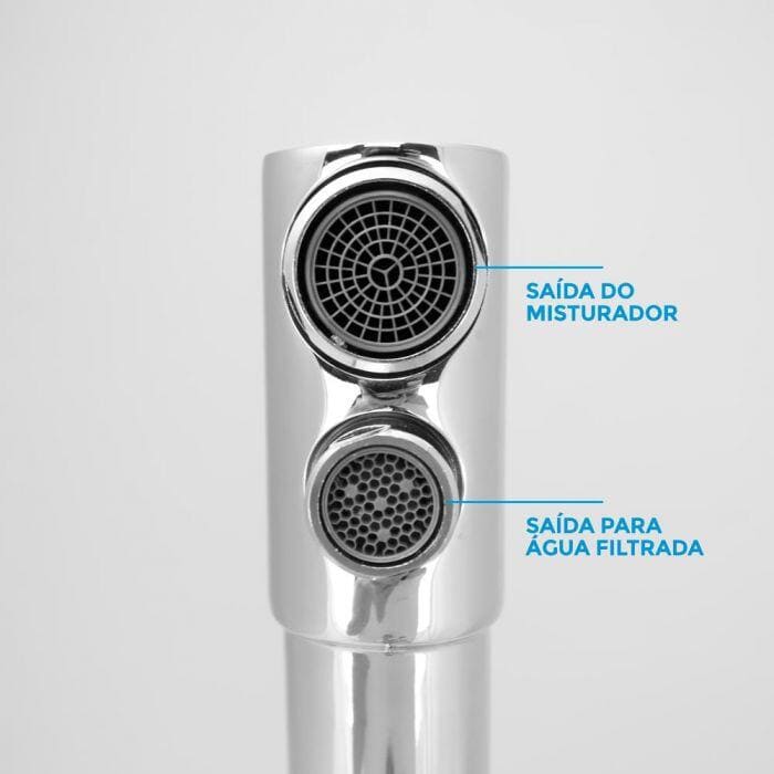 Rotação 360º com Duas Bicas: Permite uso simultâneo de água filtrada e água comum, garantindo praticidade sem cruzamento de fluxo.