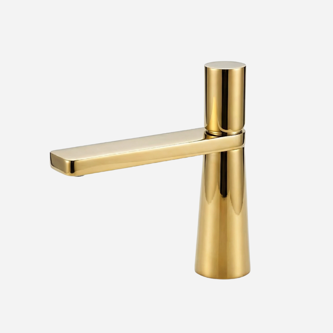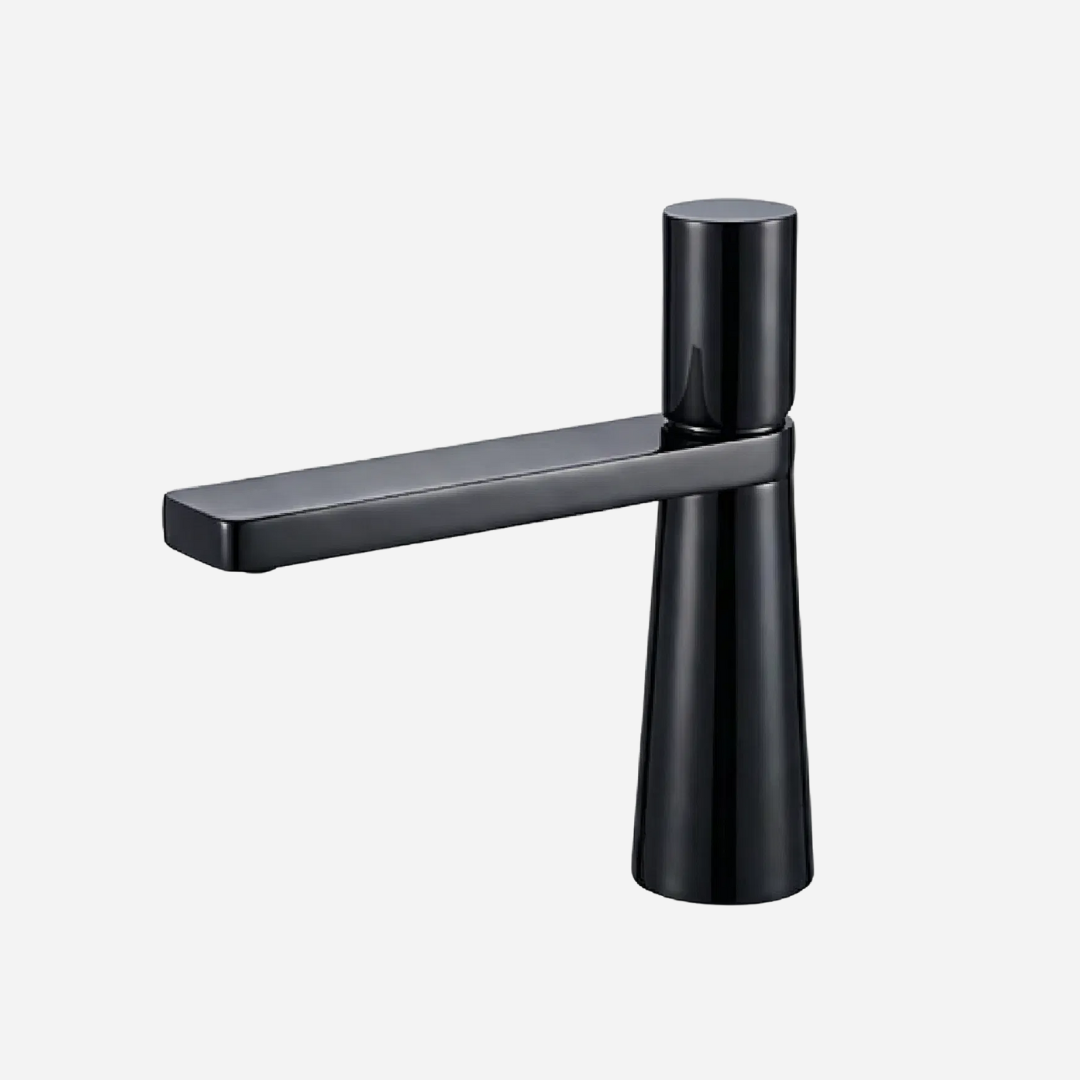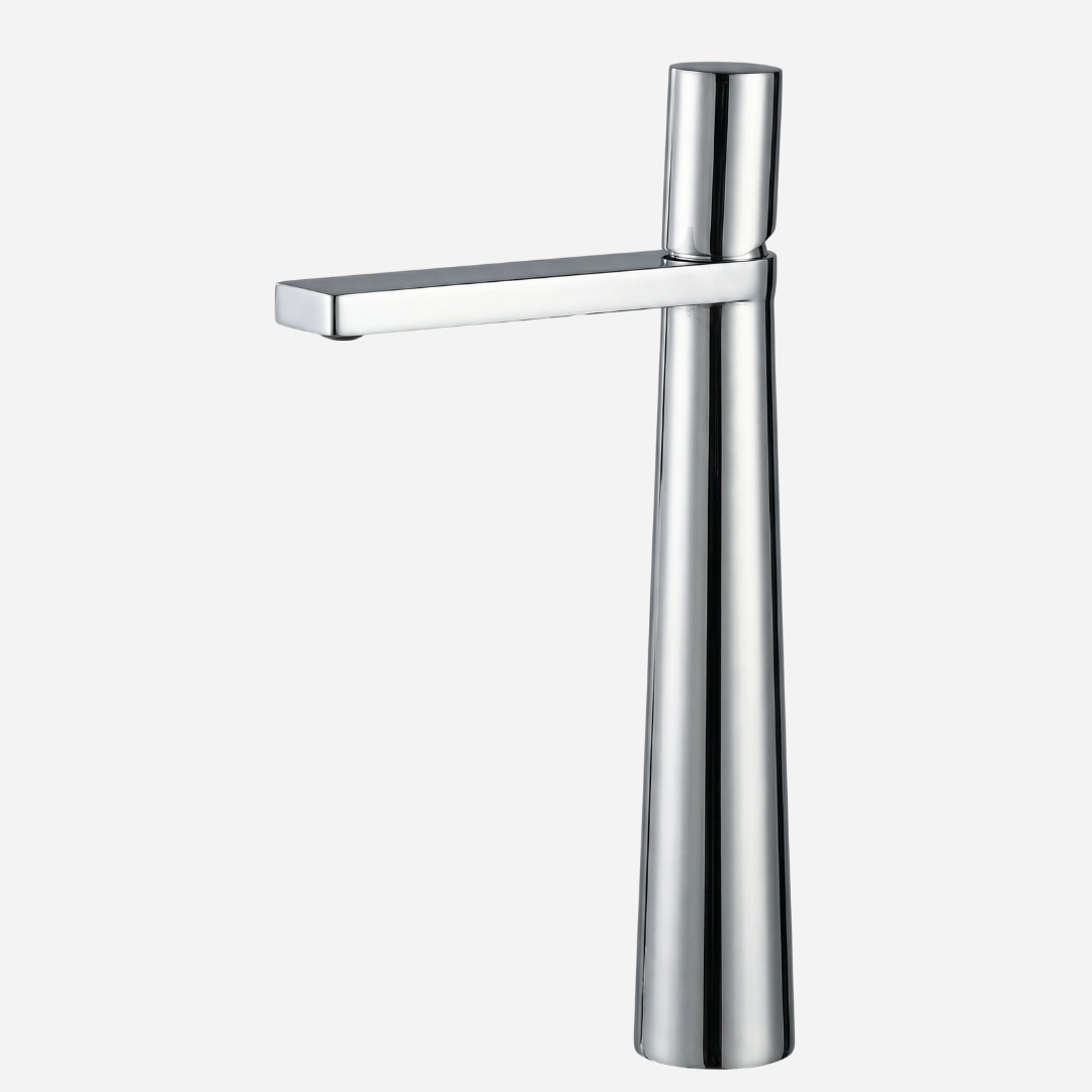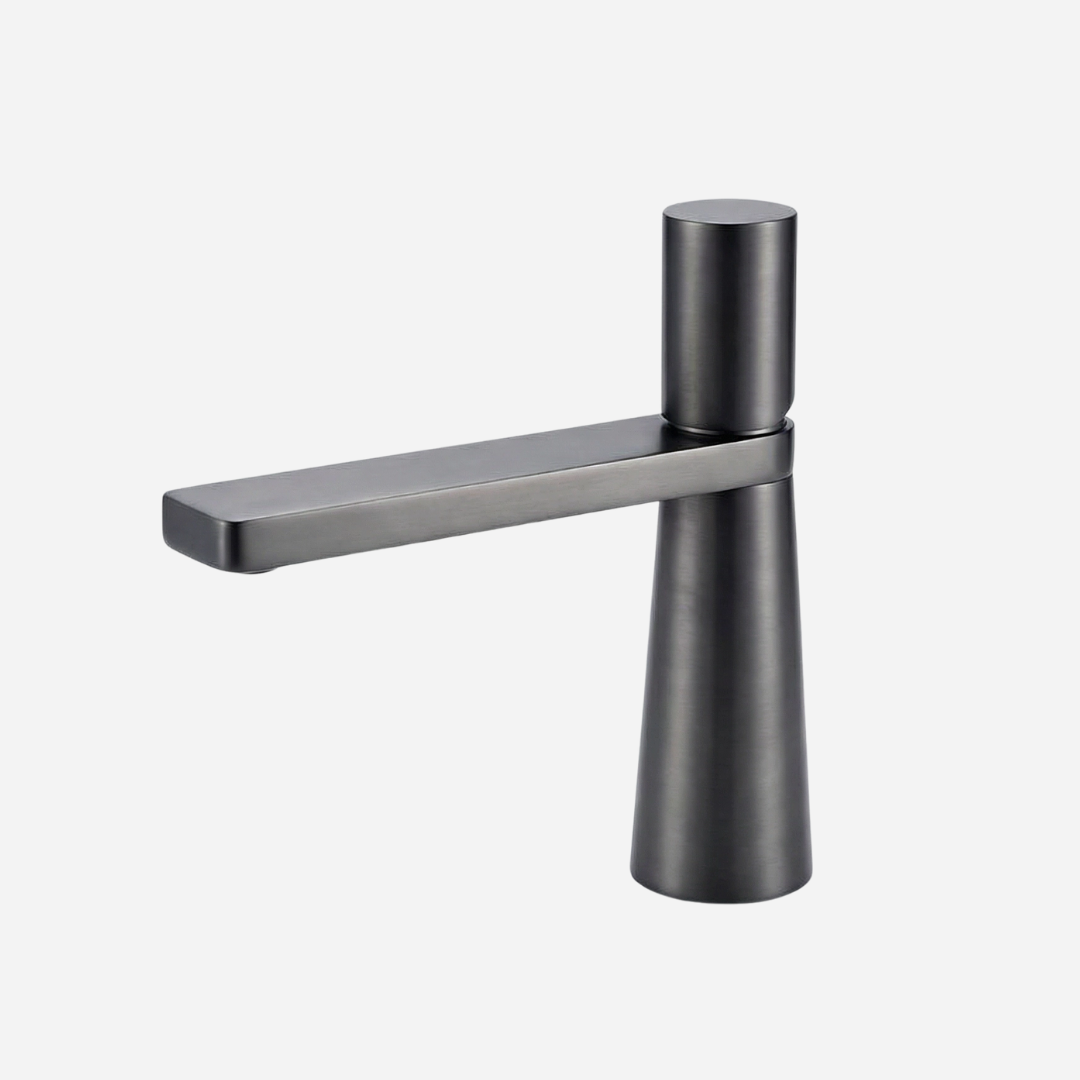 A Pyramid é a expressão máxima da geometria aplicada ao design de banheiros. Sua silhueta cônica — que se afina elegantemente da base até o topo — cria uma presença arquitetônica única na bancada. A bica plana e angular completa o visual contemporâneo, transformando cada uso em uma experiência sensorial.
