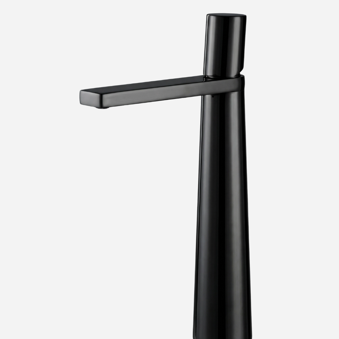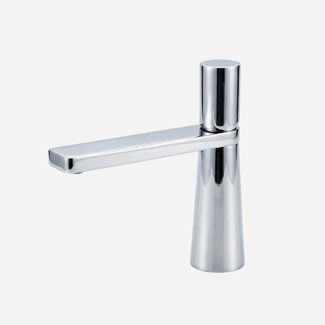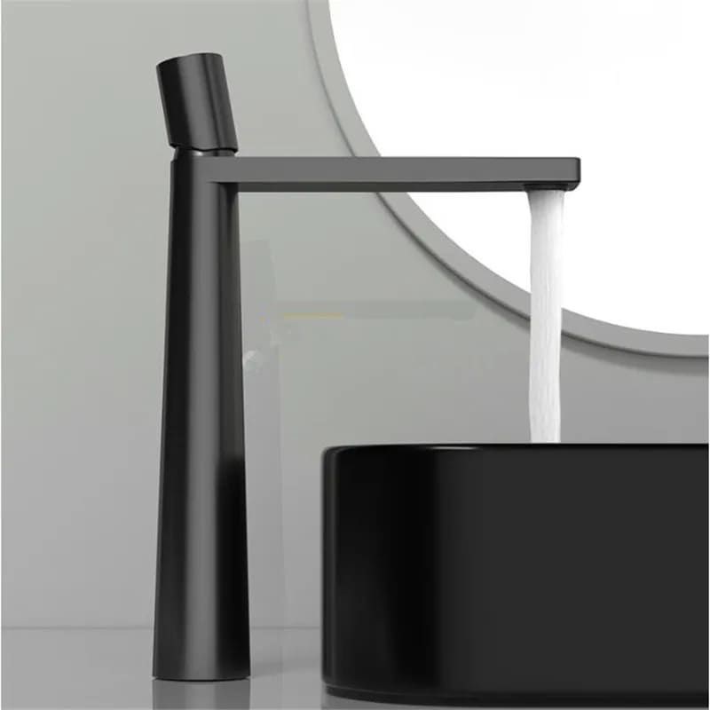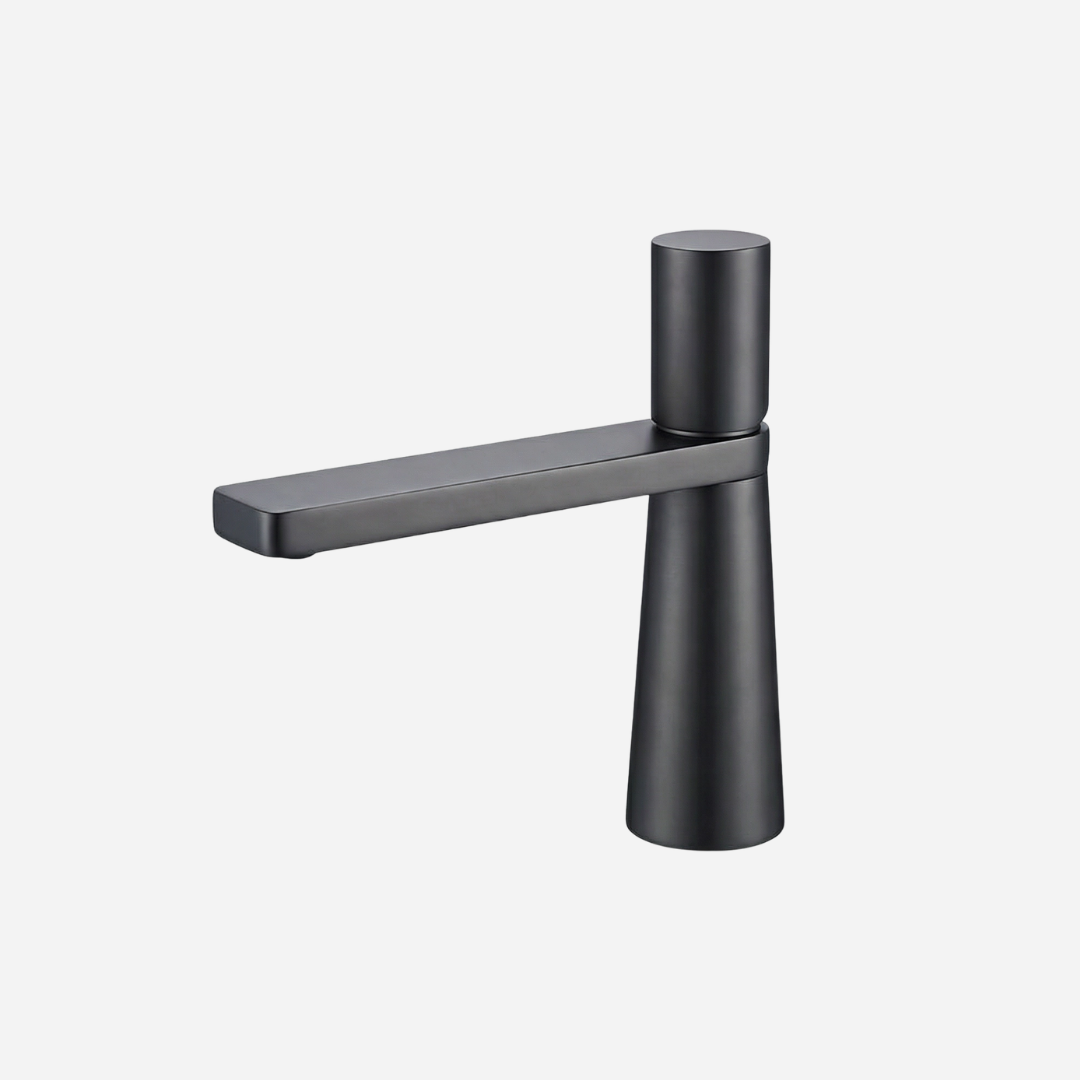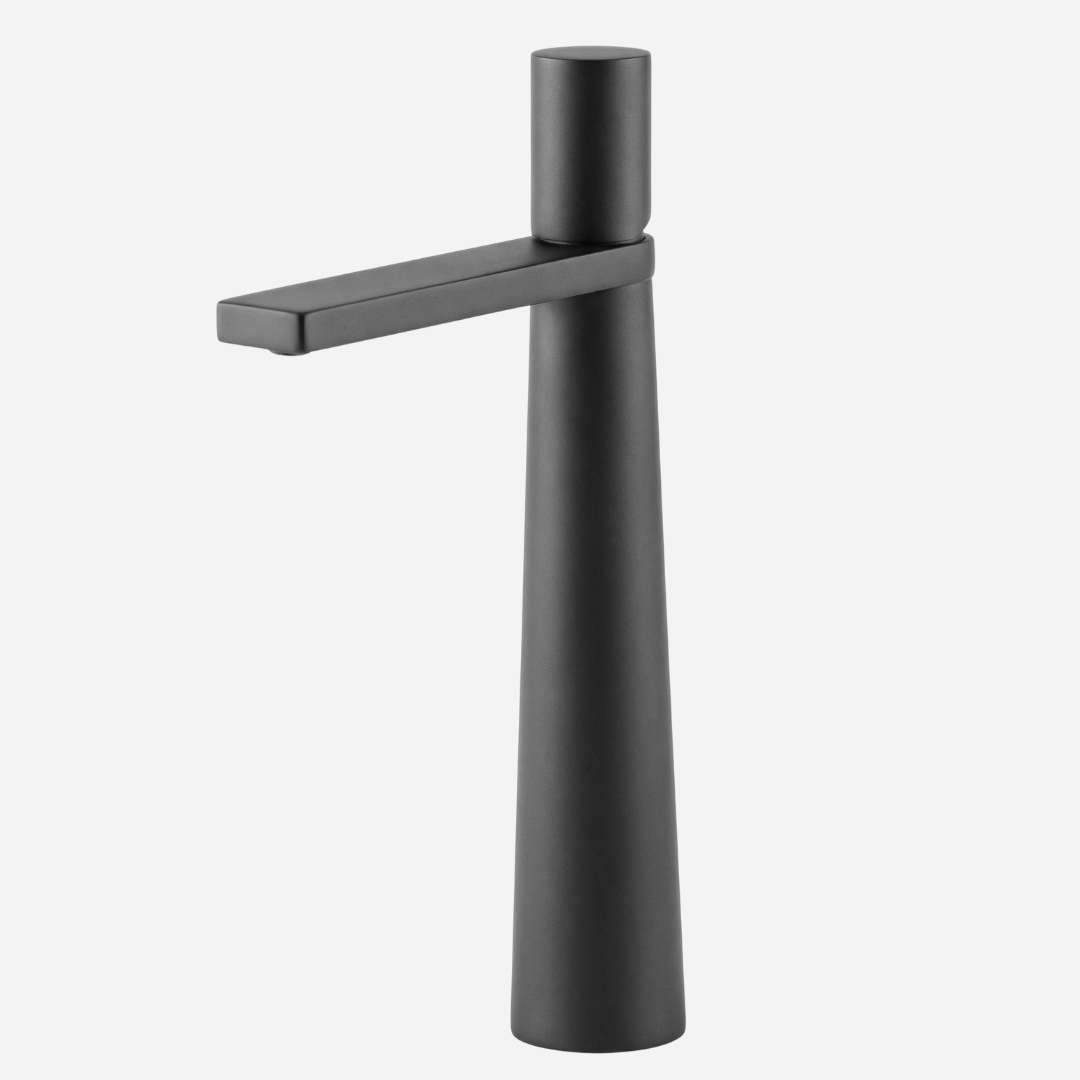 A Pyramid é a expressão máxima da geometria aplicada ao design de banheiros. Sua silhueta cônica — que se afina elegantemente da base até o topo — cria uma presença arquitetônica única na bancada. A bica plana e angular completa o visual contemporâneo, transformando cada uso em uma experiência sensorial.