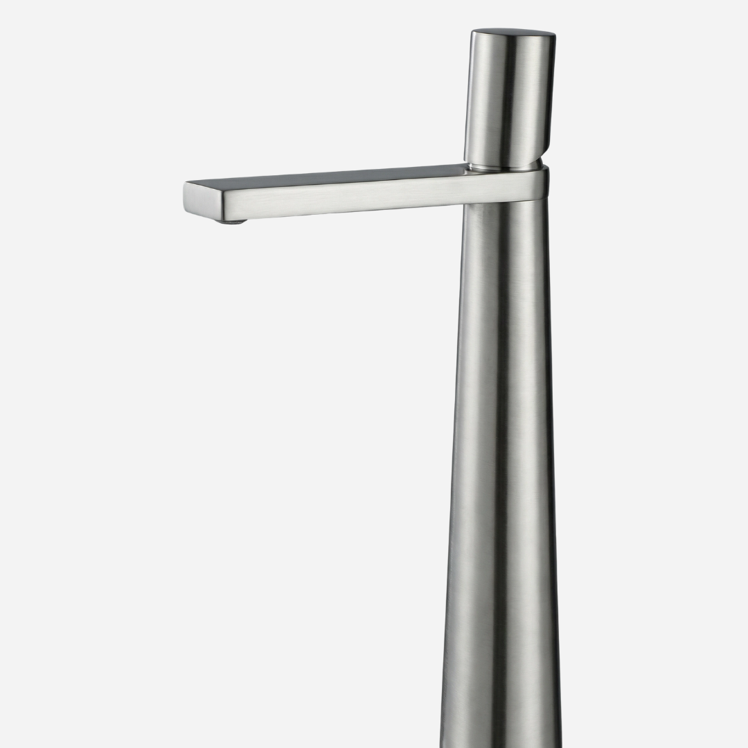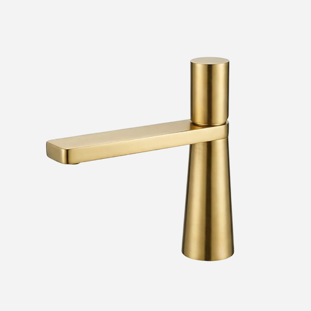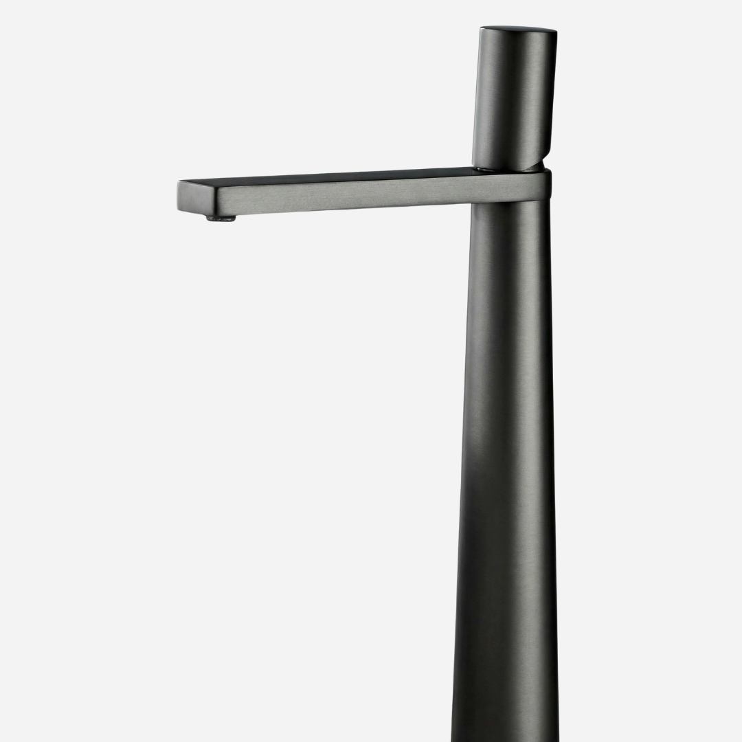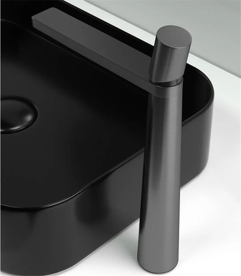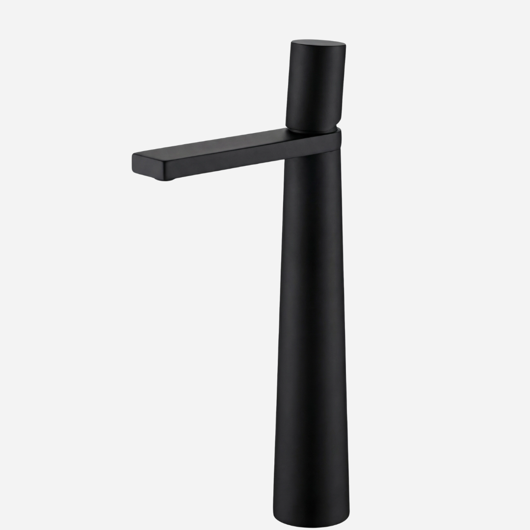 A Pyramid é a expressão máxima da geometria aplicada ao design de banheiros. Sua silhueta cônica — que se afina elegantemente da base até o topo — cria uma presença arquitetônica única na bancada. A bica plana e angular completa o visual contemporâneo, transformando cada uso em uma experiência sensorial.