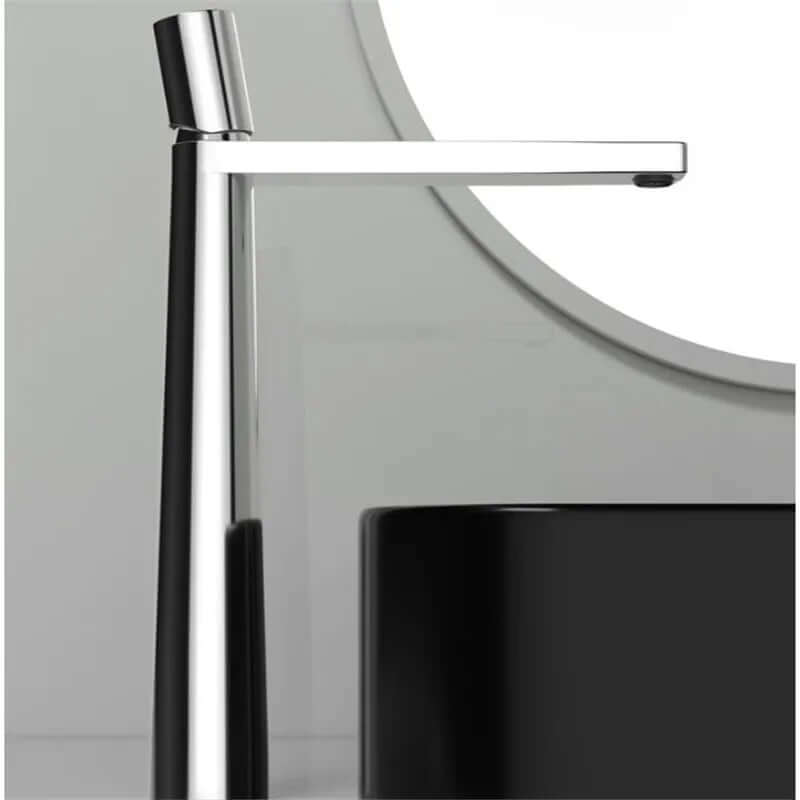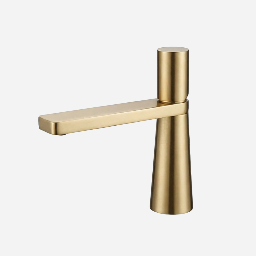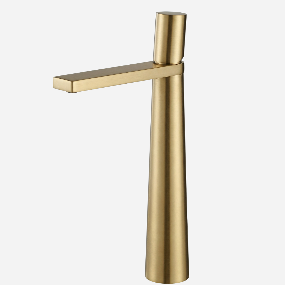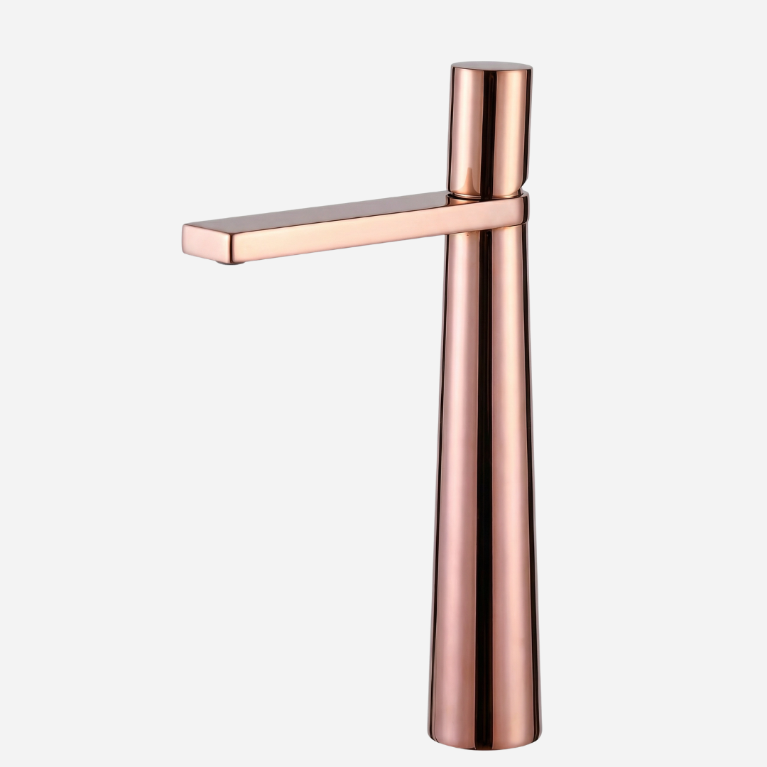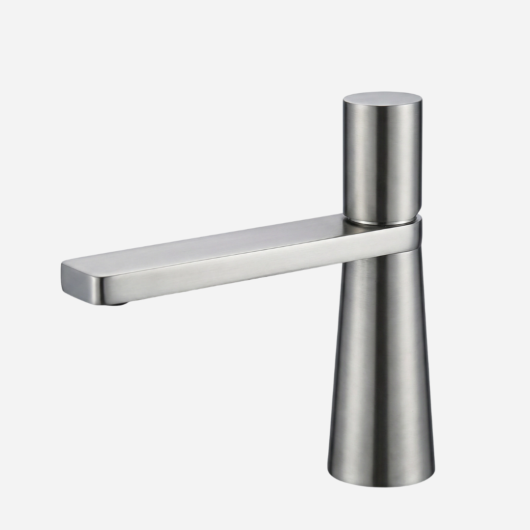 A Pyramid é a expressão máxima da geometria aplicada ao design de banheiros. Sua silhueta cônica — que se afina elegantemente da base até o topo — cria uma presença arquitetônica única na bancada. A bica plana e angular completa o visual contemporâneo, transformando cada uso em uma experiência sensorial.