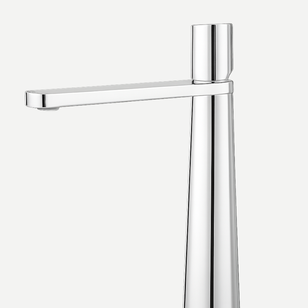 Disponível em bica alta e bica baixa, adapta-se perfeitamente a lavabos, banheiros e cozinhas, combinando-se a diversos estilos de decoração com uma presença marcante e sofisticada.
