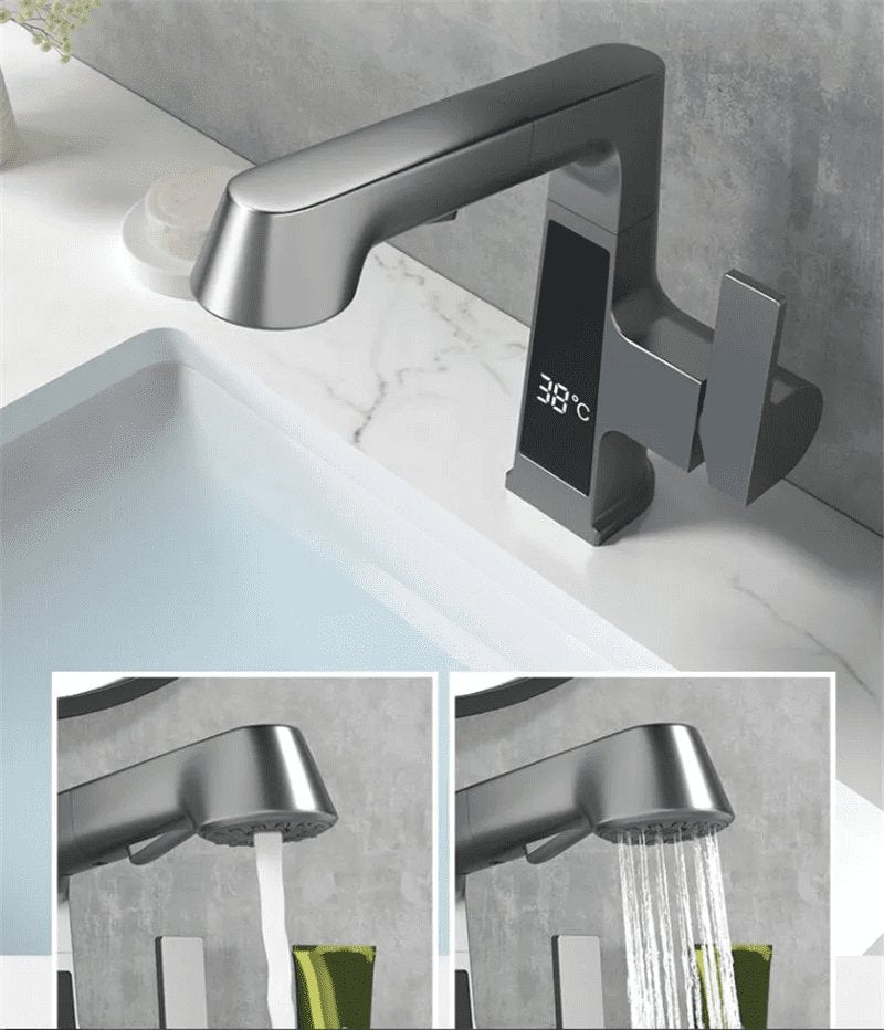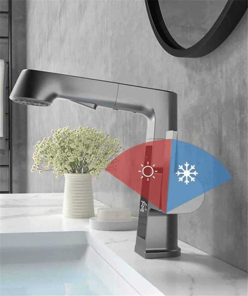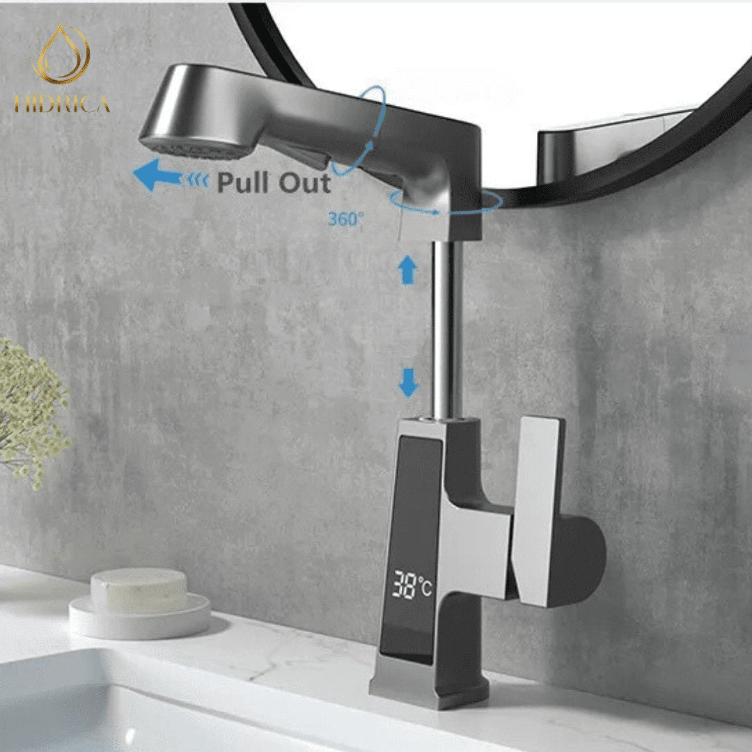 Torneira para Banheiro com Mangueira Extensível e Display - Monocomando Swirl