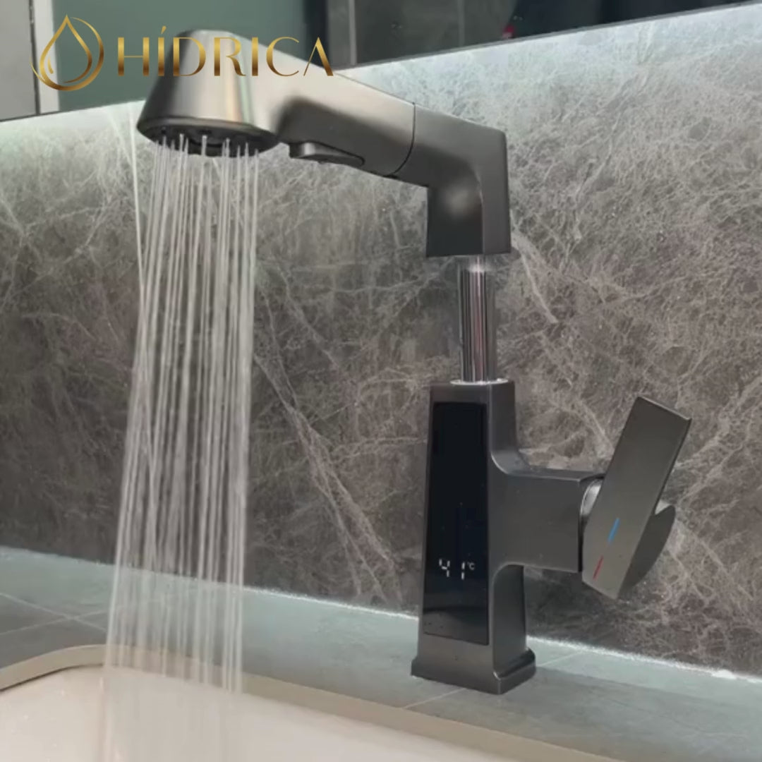 A Torneira Monocomando Swirl da Hídrica combina design minimalista, tecnologia avançada e materiais de alta qualidade, criando um produto perfeito para lavabos modernos e sofisticados. Com display digital integrado, acabamento premium e bica extensível, a Swirl redefine sua experiência com metais sanitários.