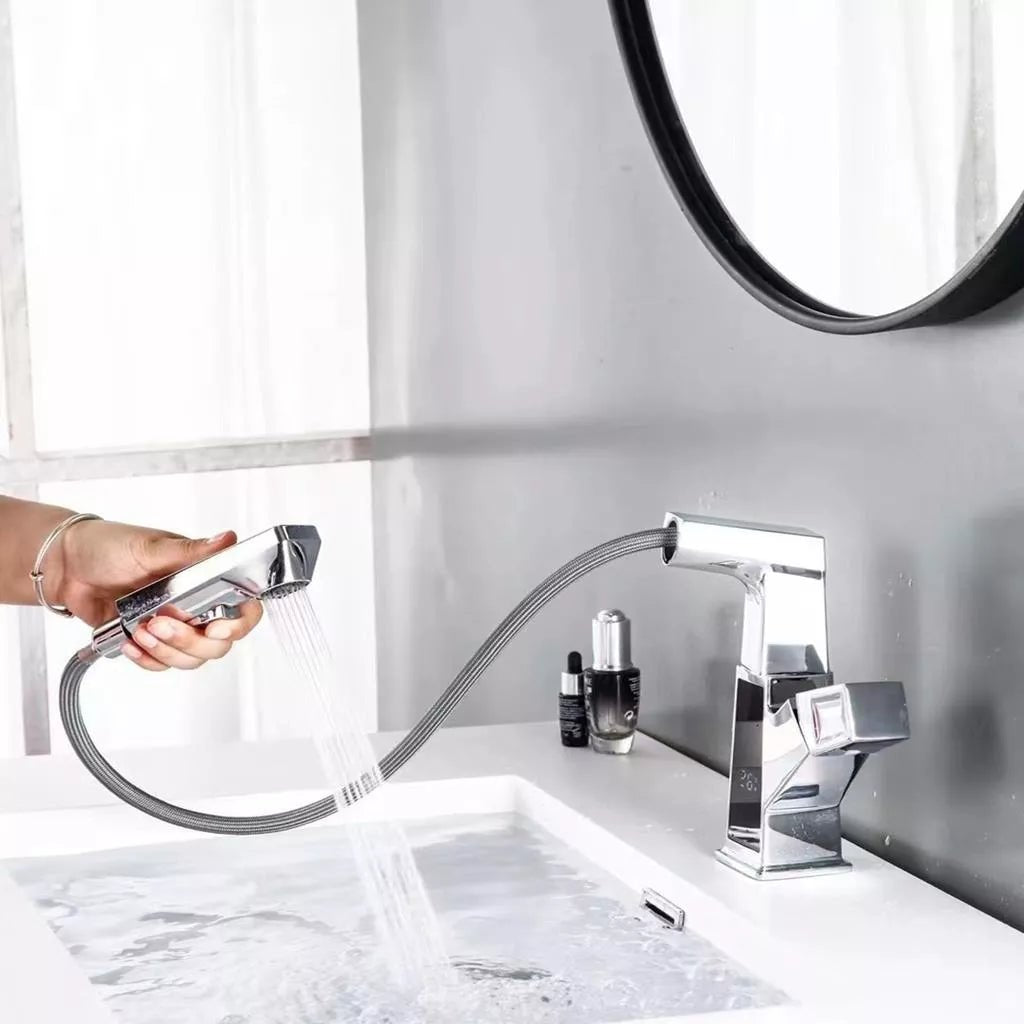 Eleve o nível do seu banheiro com a Torneira Monocomando Swirl, um modelo que une sofisticação e funcionalidade em um design inovador. Com bocal giratório 360°, mangueira extensível pull-out e display digital de temperatura, ela entrega praticidade absoluta sem abrir mão da estética. Fabricada em Inox 304, oferece resistência superior à corrosão, garantindo durabilidade para anos de uso.